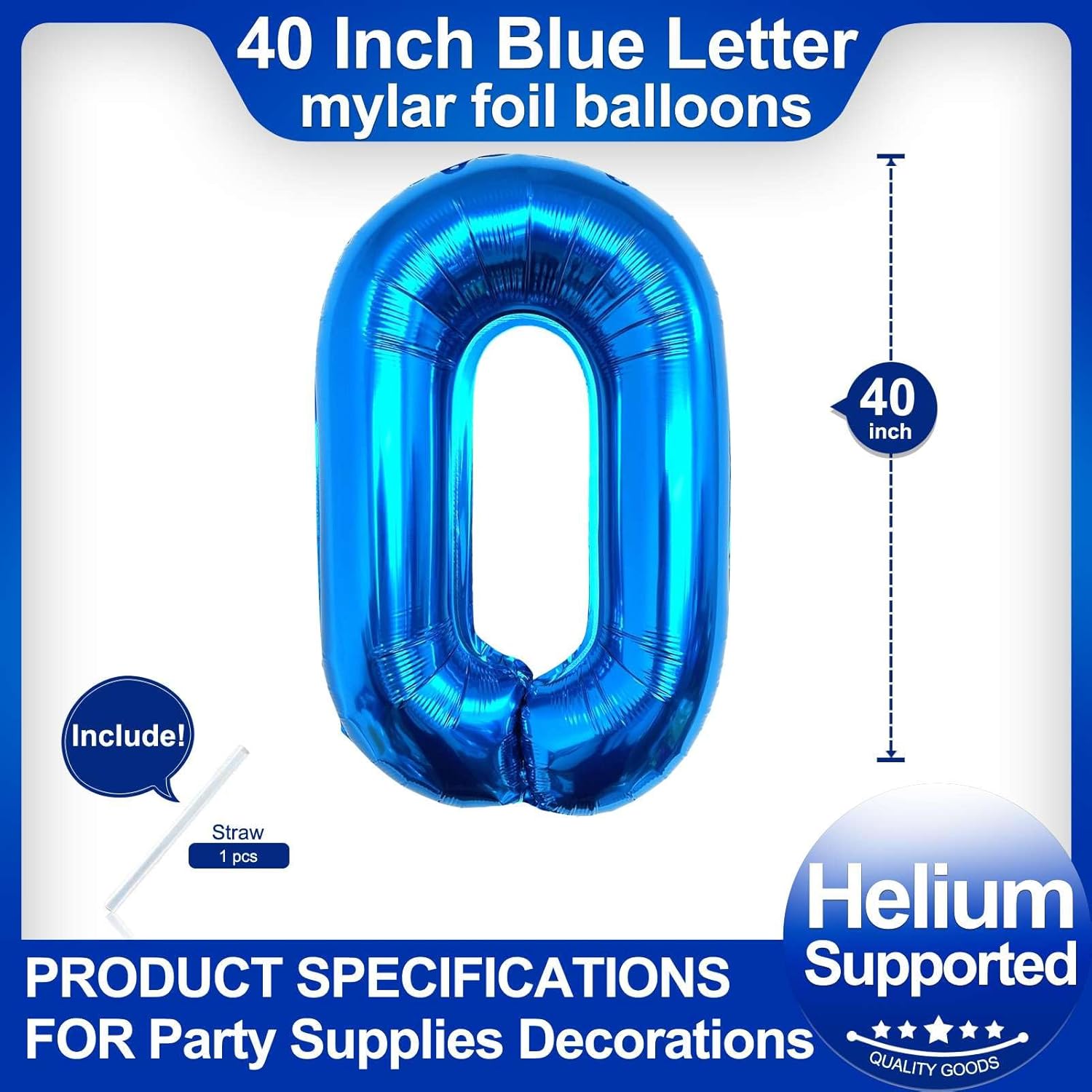 • Package included:One Blue Letter O Balloon*1,straw*1,40 inch Blue letter balloon