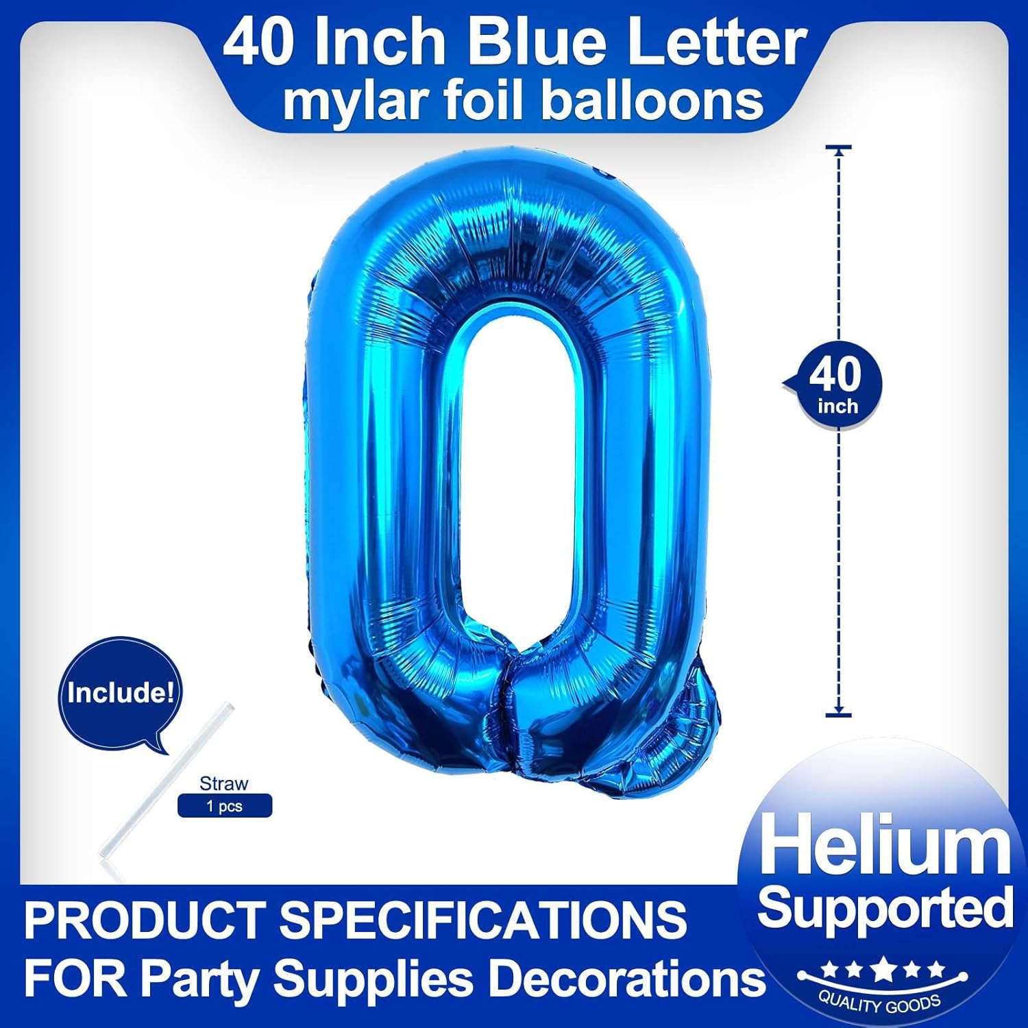 • Package included:One Blue Letter Q Balloon*1,straw*1,40 inch Blue letter balloon