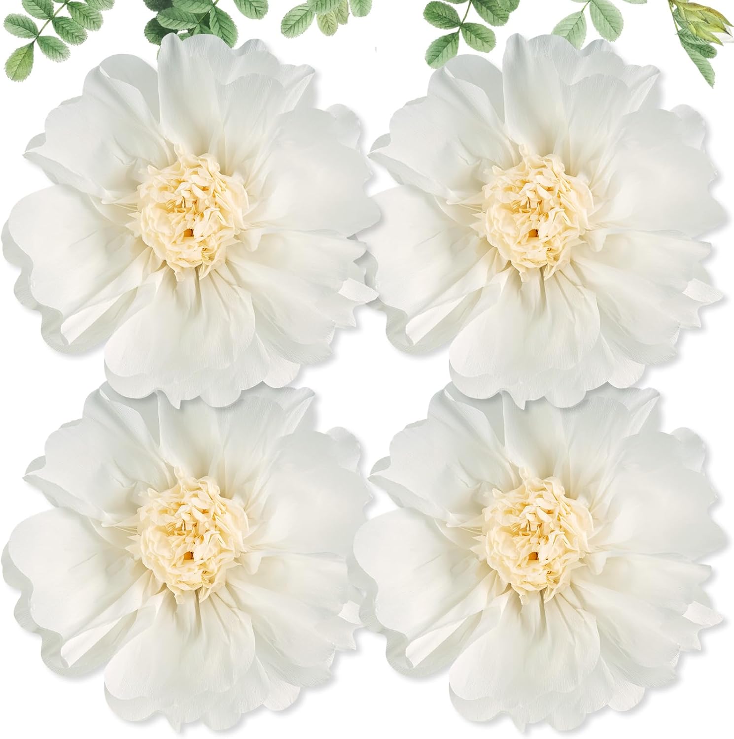 • 💮【FRESH LARGE PAPER FLOWERS DECORATION】: Fresh and light, spring is in the air! These 4 PCS 20-inch Giant White Paper Flowers are designed for versatile use; adding a burst of elegance and cheer to any space. These artificial decorations can be hung for a festive look, or adhered to a wall or outdoors for decoration! These Large Crepe Paper Tissue Flowers are perfect for any event.