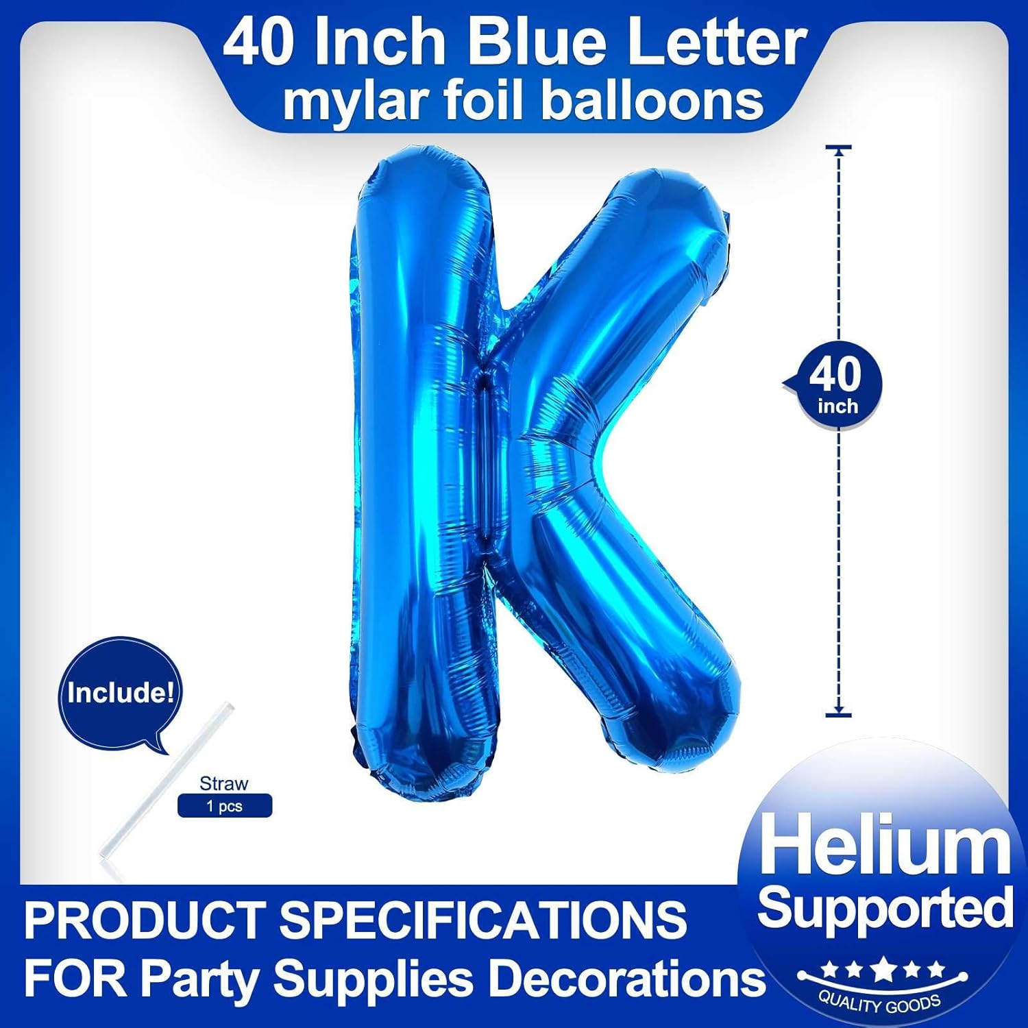 • Package included:One Blue Letter K Balloon*1,straw*1,40 inch Blue letter balloon