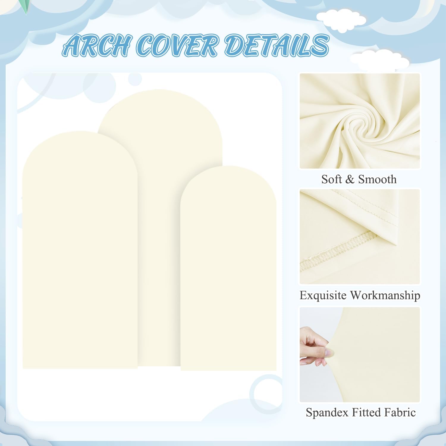 FOTSHARER Arch Backdrop Stand and Cover Set (7.2FT, 6.6FT, 6FT) Metal Wedding Arch Stands Ivory Spandex Cover for Arched Backdrop Background Arches Stand with Cover for Wedding Party Anniversary Decor