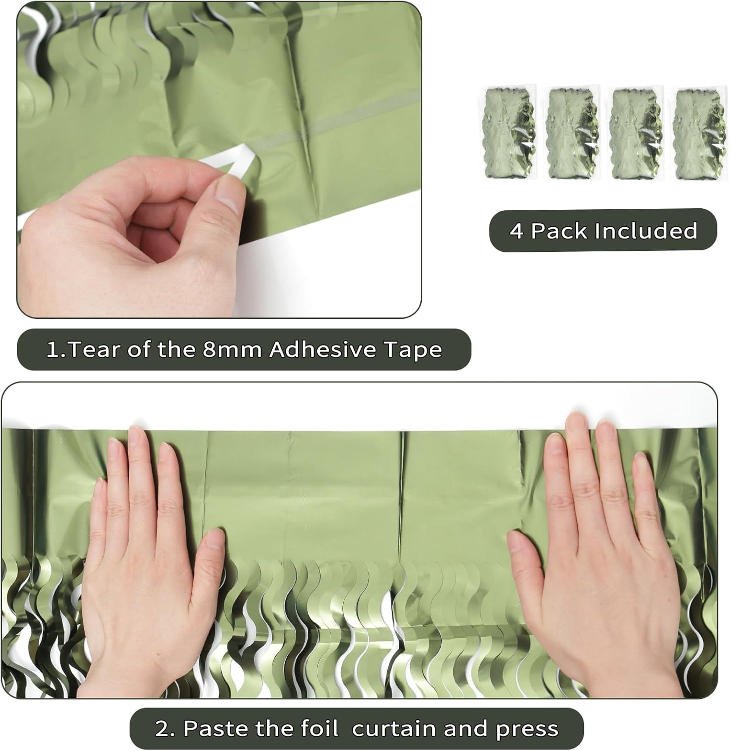 • Easy to Use: The olive green foil curtain backdrop has double-sided tape on the top of the back,please peel tape off would be very easy to paste on smooth surfaces such as wall,window,table,door or anywhere you like