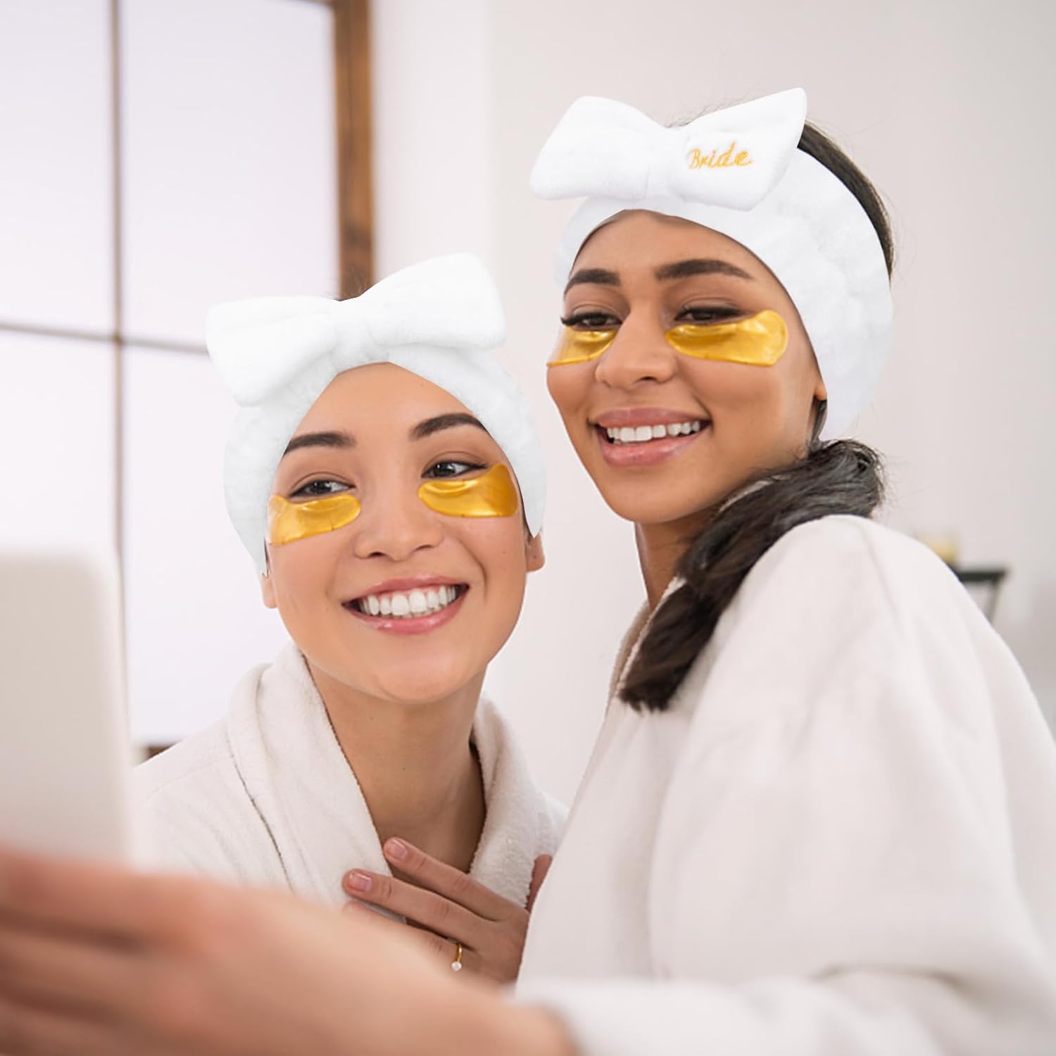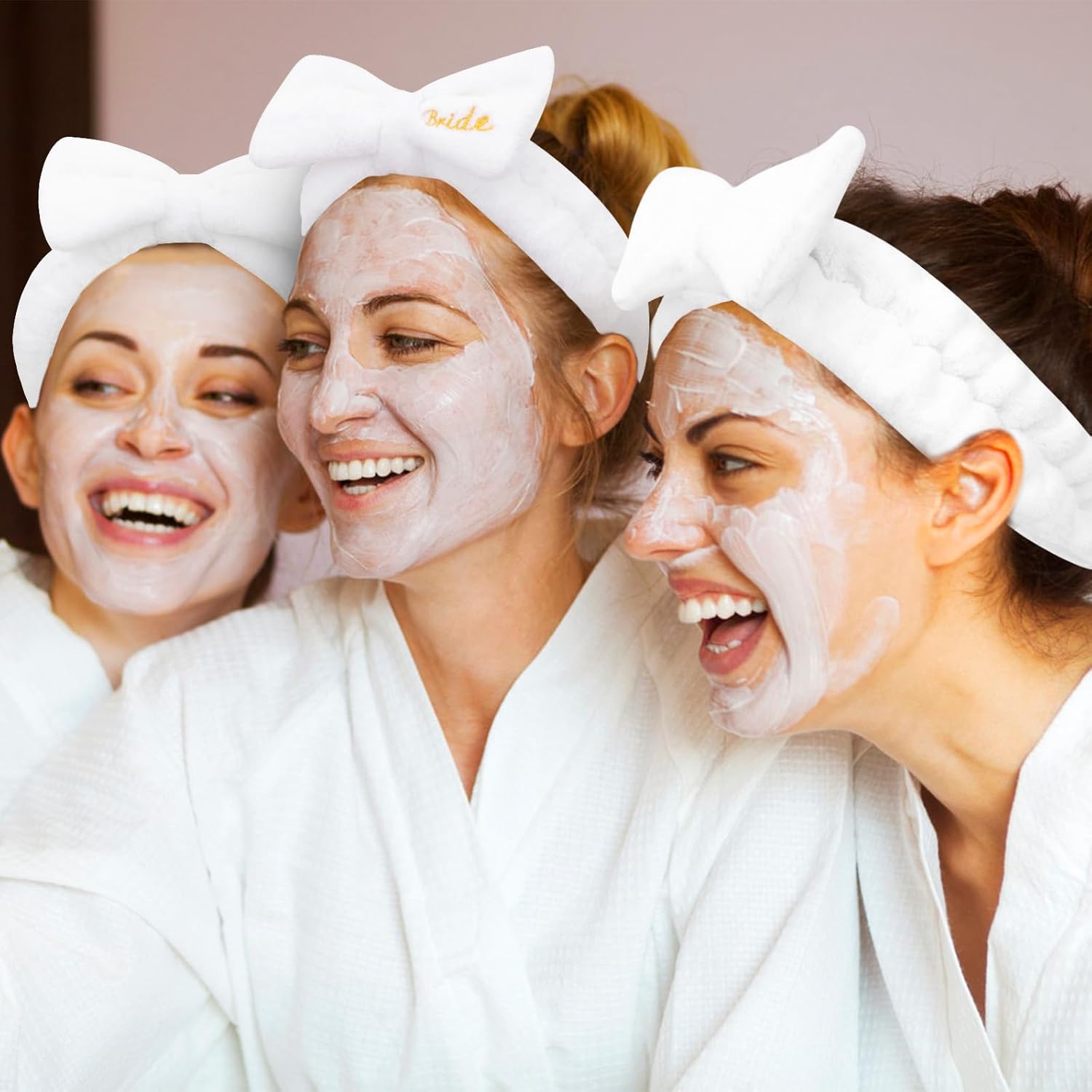 Semato Bachelorette Party Favor Set Bride and Bridesmaid Spa Headband Skincare Headbands for Women Gifts and Party Supplies (1 bride+7white)