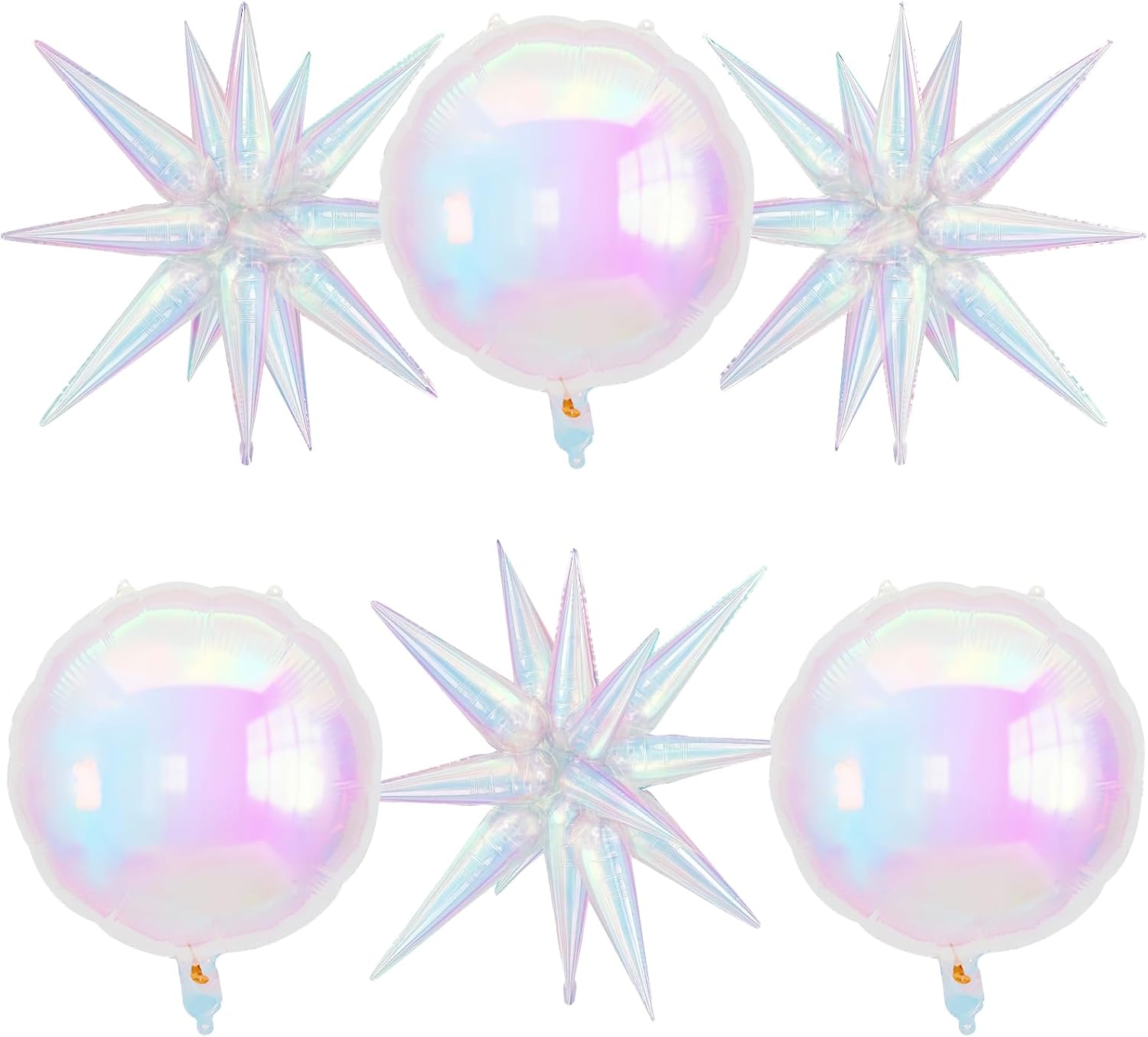 6Pcs Iridescent Foil Balloons, 22in Round Shaped Balloons and Explosion Star Iridescent Balloon, Large Holographic Clear Foil Balloon for Birthday Mermaid Rainbow Wedding Party Supplies
