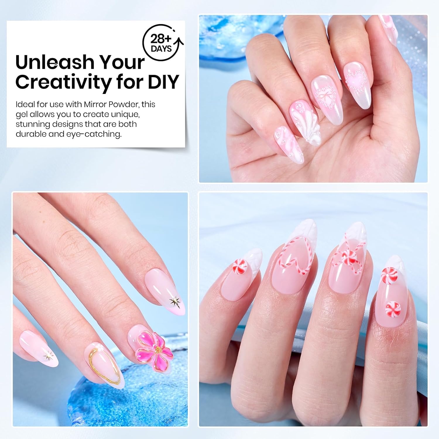 • Easy Application & Control: The white 3D sculpting rhinestone glue applies evenly, has easy control and adjustment before curing powder, holds its shape without sagging, the color is transparent, and can be rubbed with magic mirror powder to achieve dazzling metallic effects. It allows for precise application, ensuring a seamless and natural-looking manicure.
