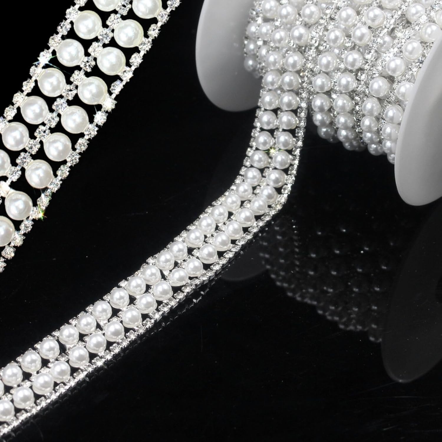 • Endless Creative Uses: Let your imagination run wild! Use this pearl and rhinestone chain for DIY jewelry, wedding decor, party favors, scrapbooking, or adding glamour to jackets, bags, or shoes. The smooth, lightweight design makes it easy to sew or glue onto any surface