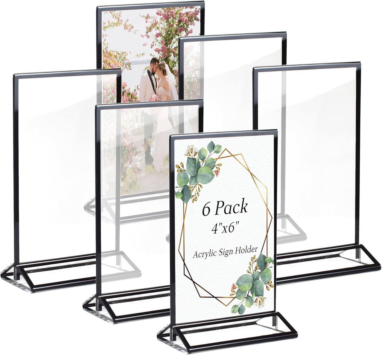 4x6 Picture Frames Acrylic Sign Holder 6 Pack Menu Stands, Double-sided Picture Stands for Wedding Table Numbers Holders, Table Top Display Wedding Sign Stand Vertical Flyer Holder, Black