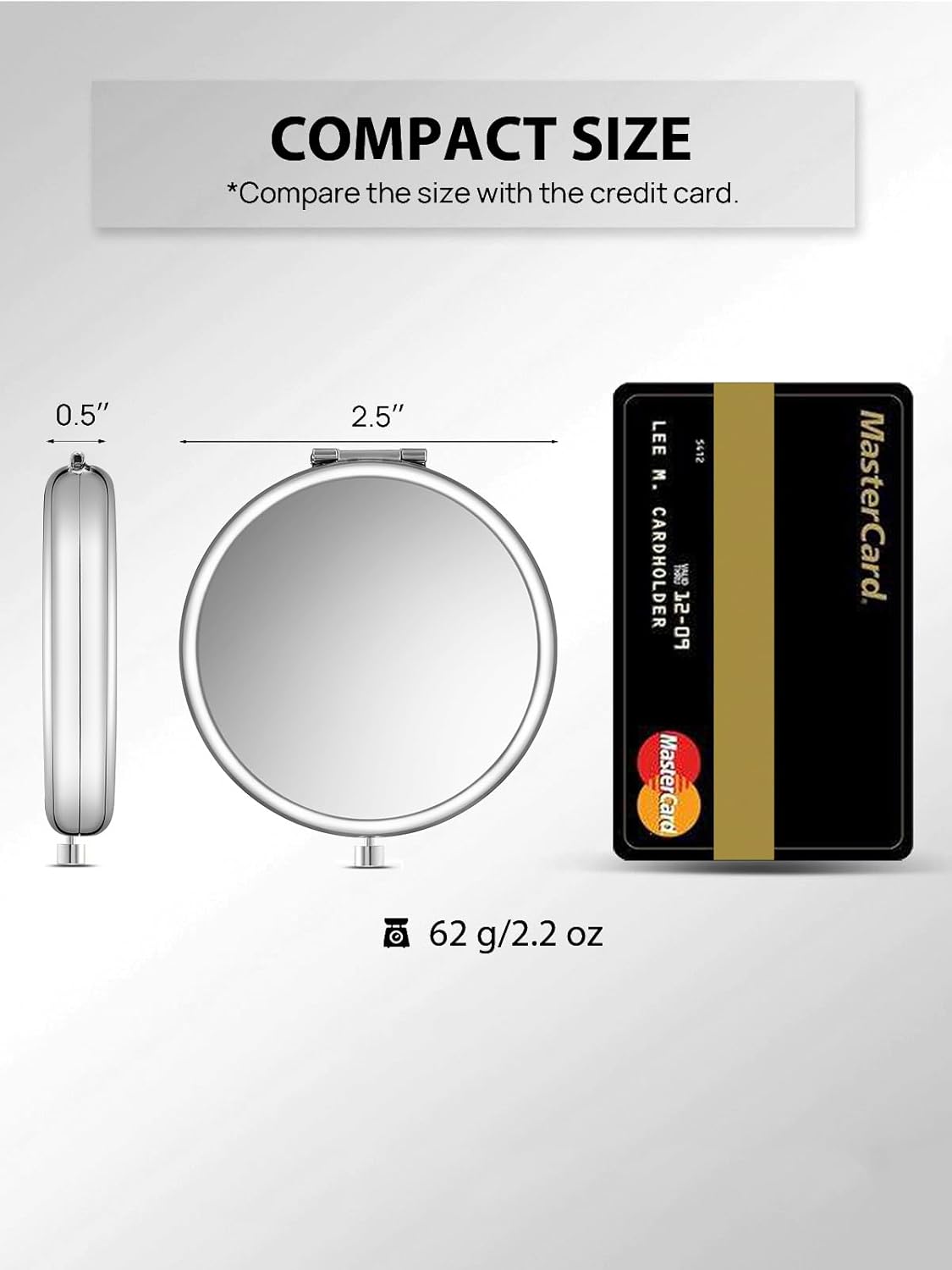 • 1X & 2X MAGNIFICATION: Double-sided purse mirror that meets all your cosmetic needs. The regular mirror is ideal for viewing the entire face closely, while the 2X magnifier works great for mascara, tweezing, plucking, flossing, etc