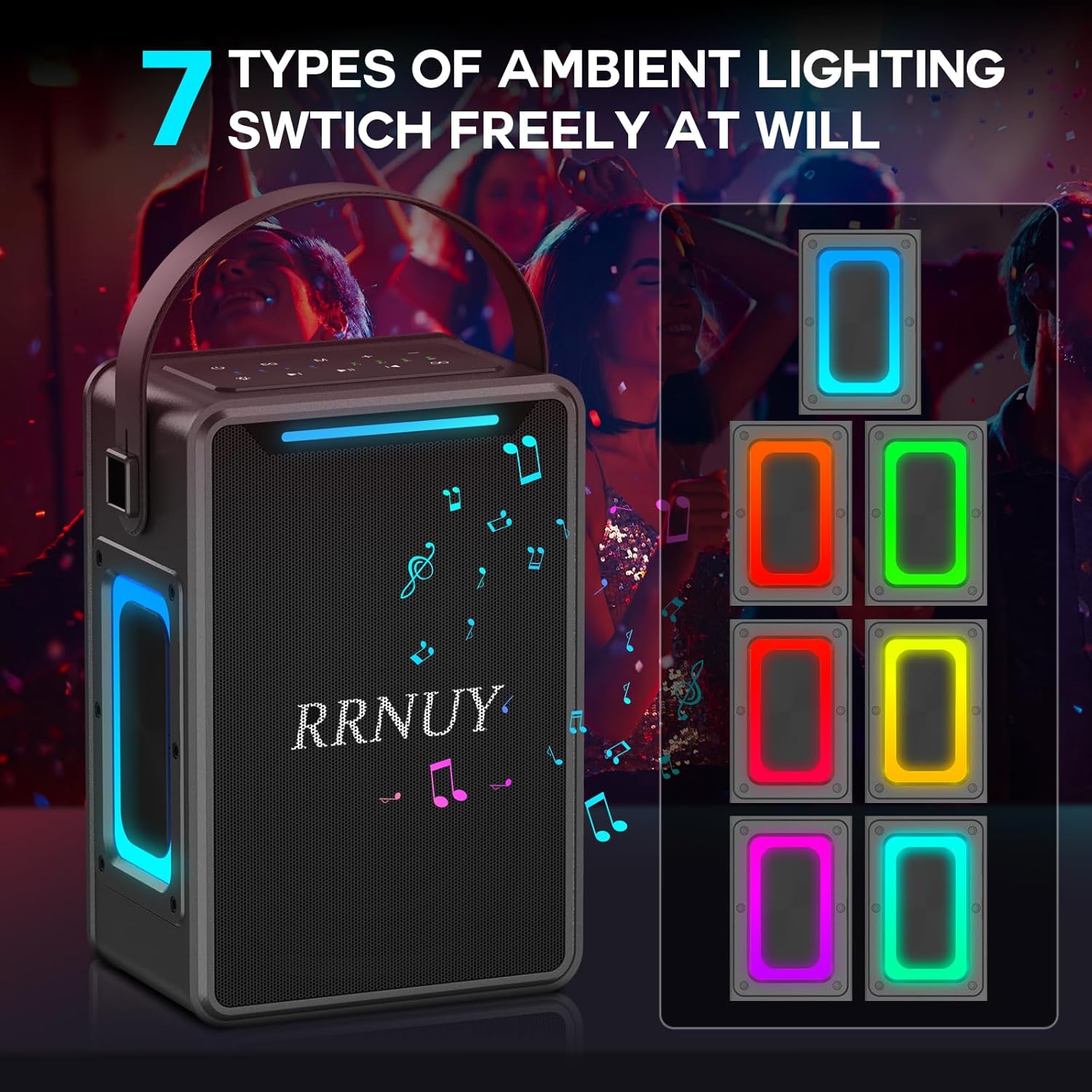 • ♫ 【Bluetooth speaker with LED Lights】 The B66 party speaker is designed with multiple dynamic light modes to light up every corner of the party space, and The LED lights can change the lighting effect according to the rhythm of music, can give your home party, beach, camping or outdoor travel an exciting atmospher. You can easily turn on and off the LED lights with click LED control button.