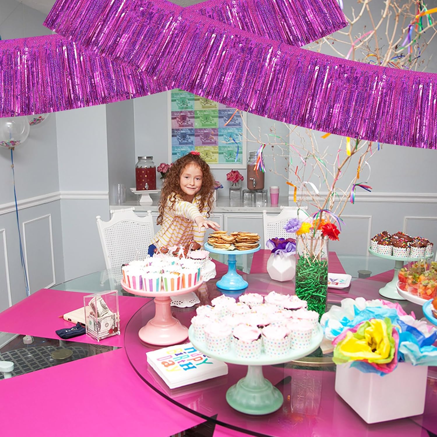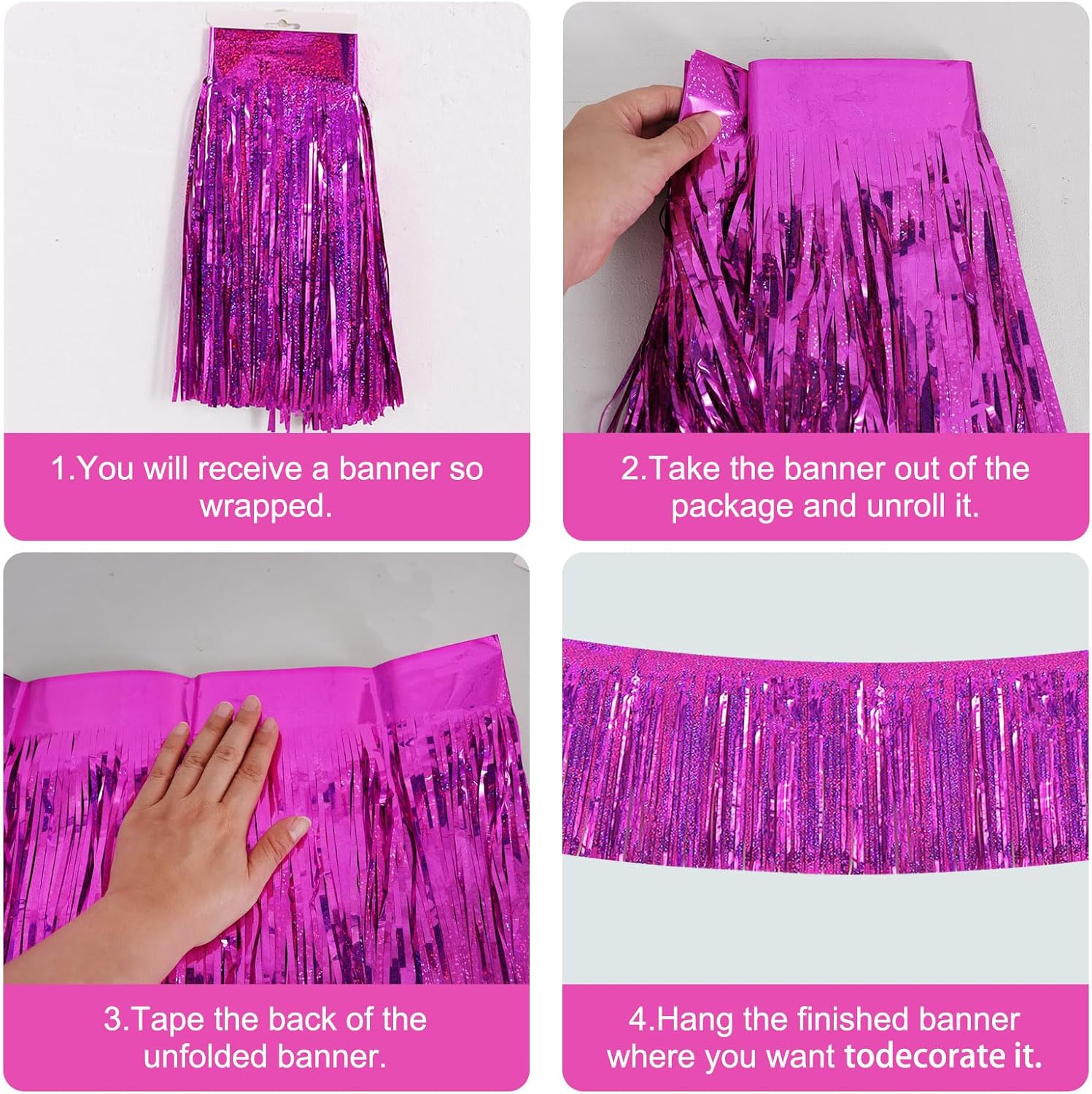 • 【Package includes】:3 Packs shiny fringed tassel banner, each tassel garland is about 10 feet long, enough to decorate your party.