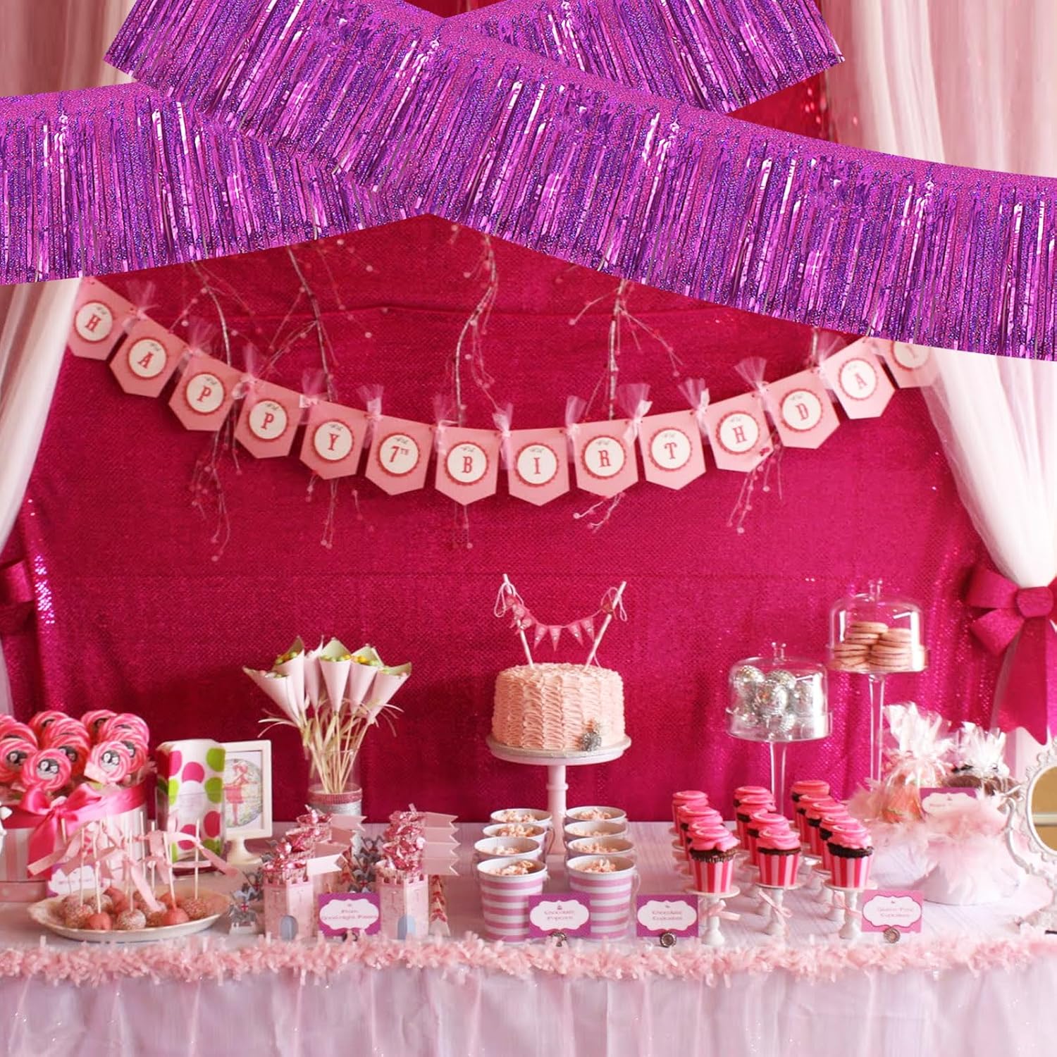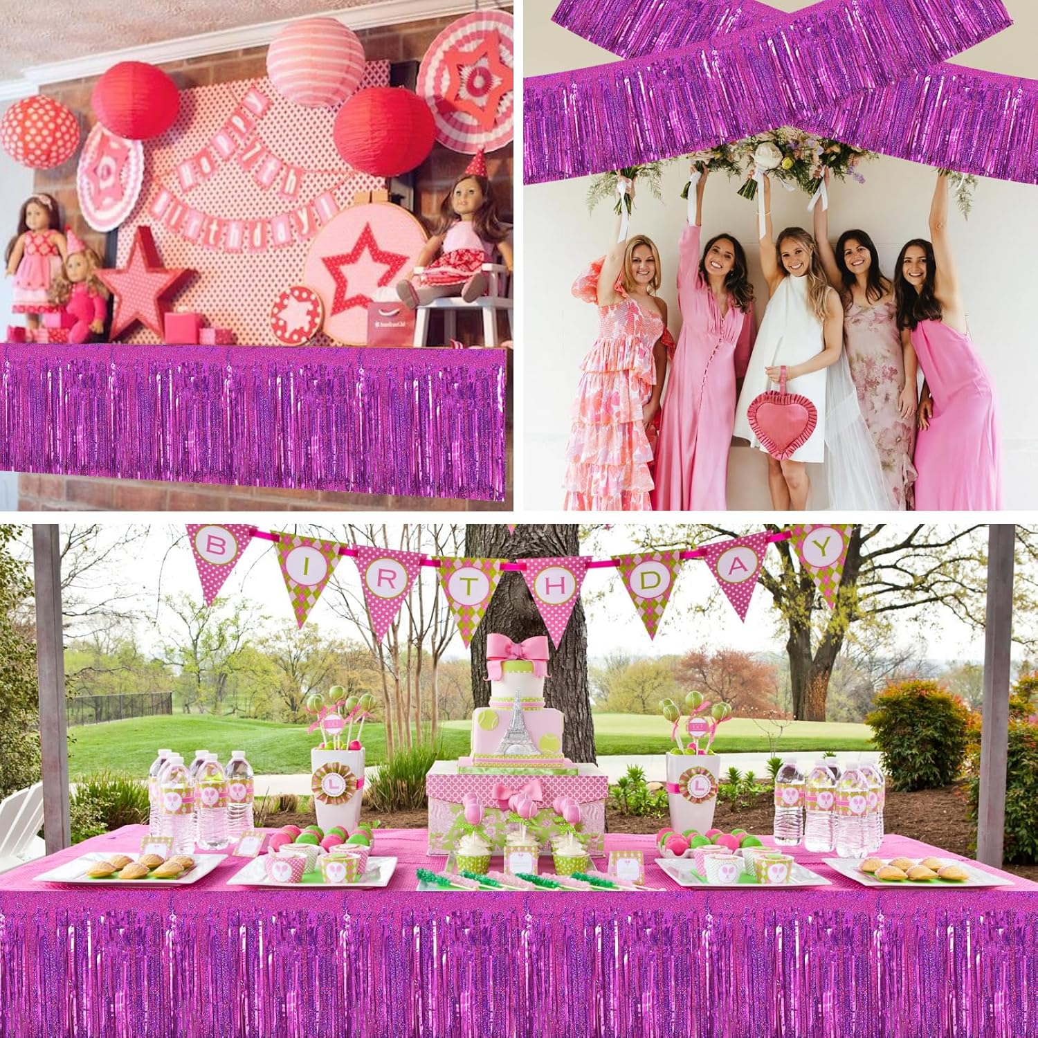 BEISHIDA 3 Packs Metallic Foil Fringe Garland Laser Rose Red Wall Hanging Tinsel Fringe Banners for Car Floats Bridal Shower Wedding Birthday Easter Graduation Holiday Party Decoration(30 Feet)