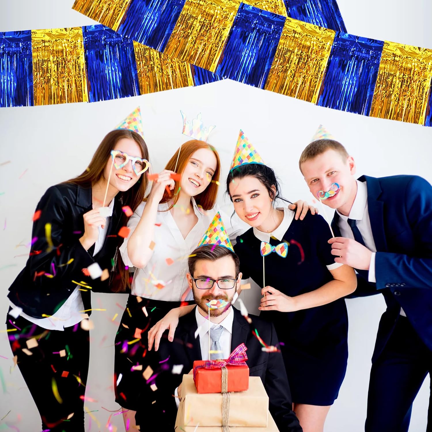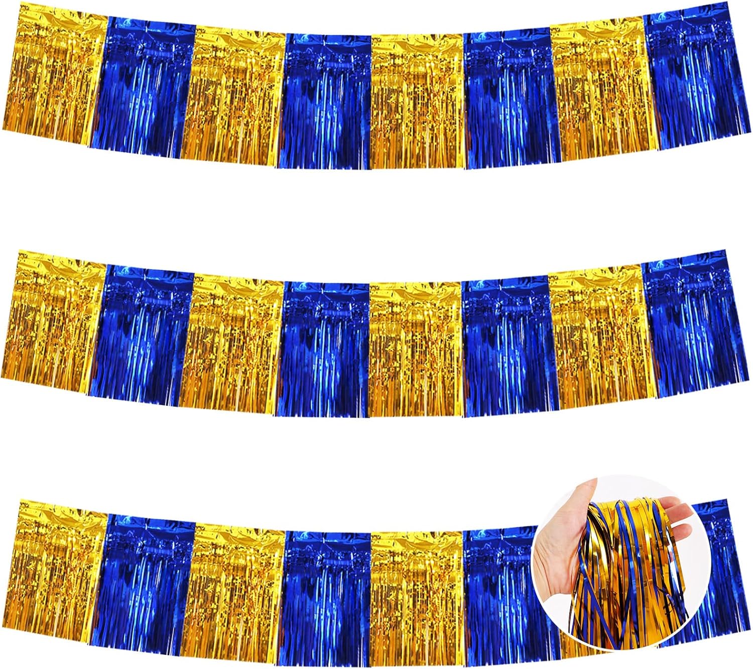BEISHIDA 3 Packs Metallic Foil Fringe Garland Blue Gold Wall Hanging Tinsel Fringe Banners for Car Floats Bridal Shower Wedding Birthday Easter Graduation Holiday Party Decoration(30 Feet)