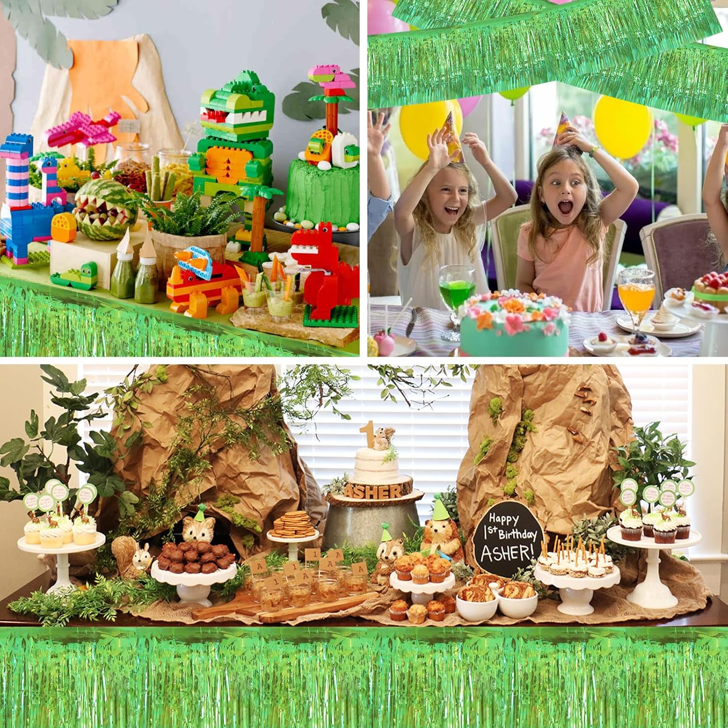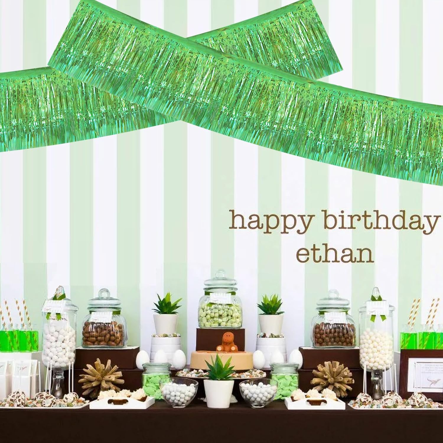 BEISHIDA 3 Packs Metallic Foil Fringe Garland Shining Green Wall Hanging Tinsel Fringe Banners for Car Floats Bridal Shower Wedding Birthday Easter Graduation Holiday Party Decoration(30 Feet)