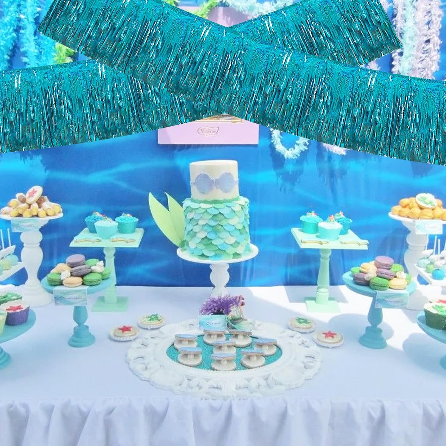 BEISHIDA 3 Packs Metallic Foil Fringe Garland Laser Lake Blue Wall Hanging Tinsel Fringe Banners for Car Floats Bridal Shower Wedding Birthday Easter Graduation Holiday Party Decoration(30 Feet)