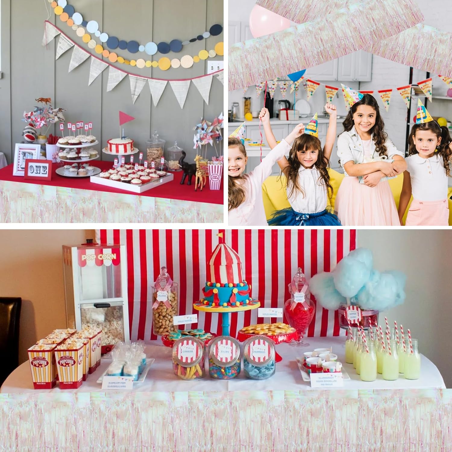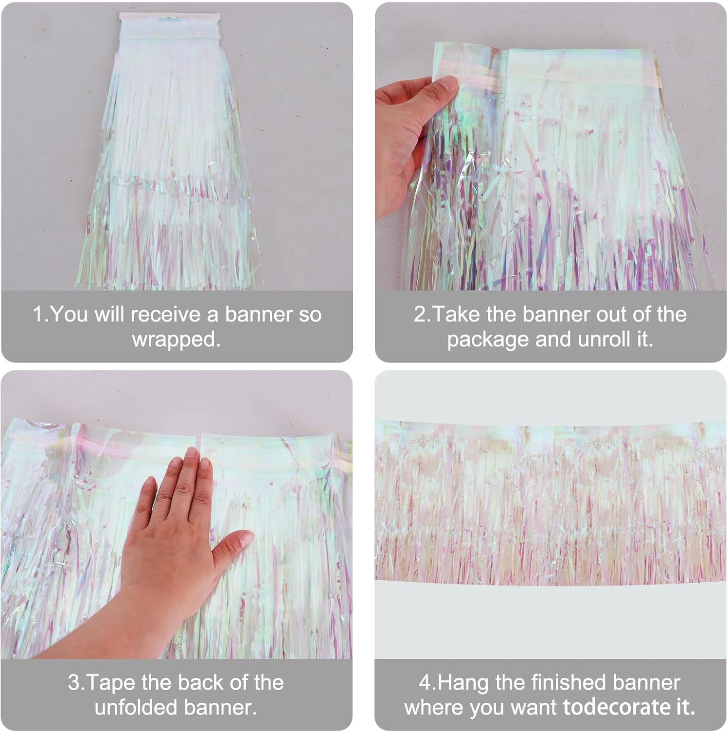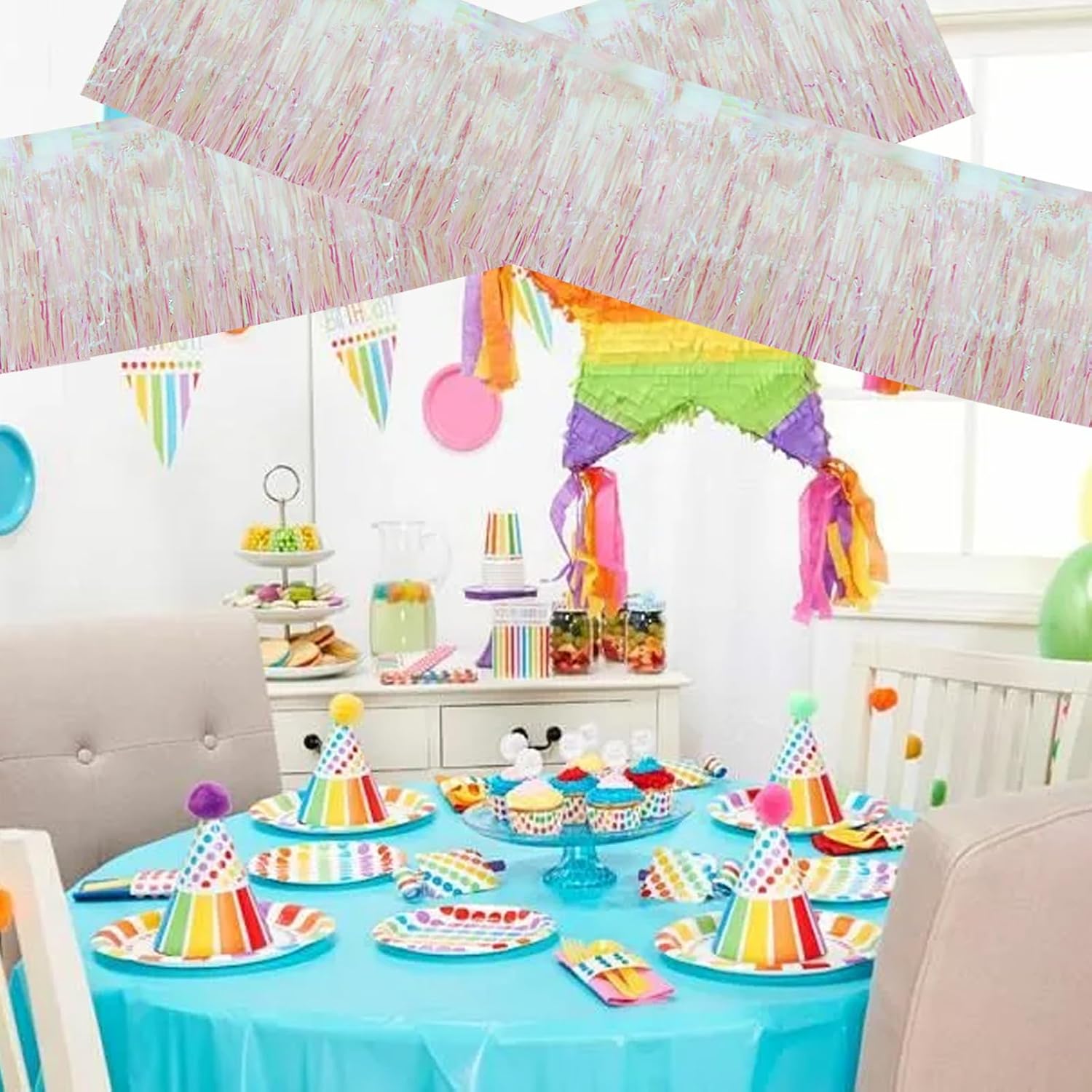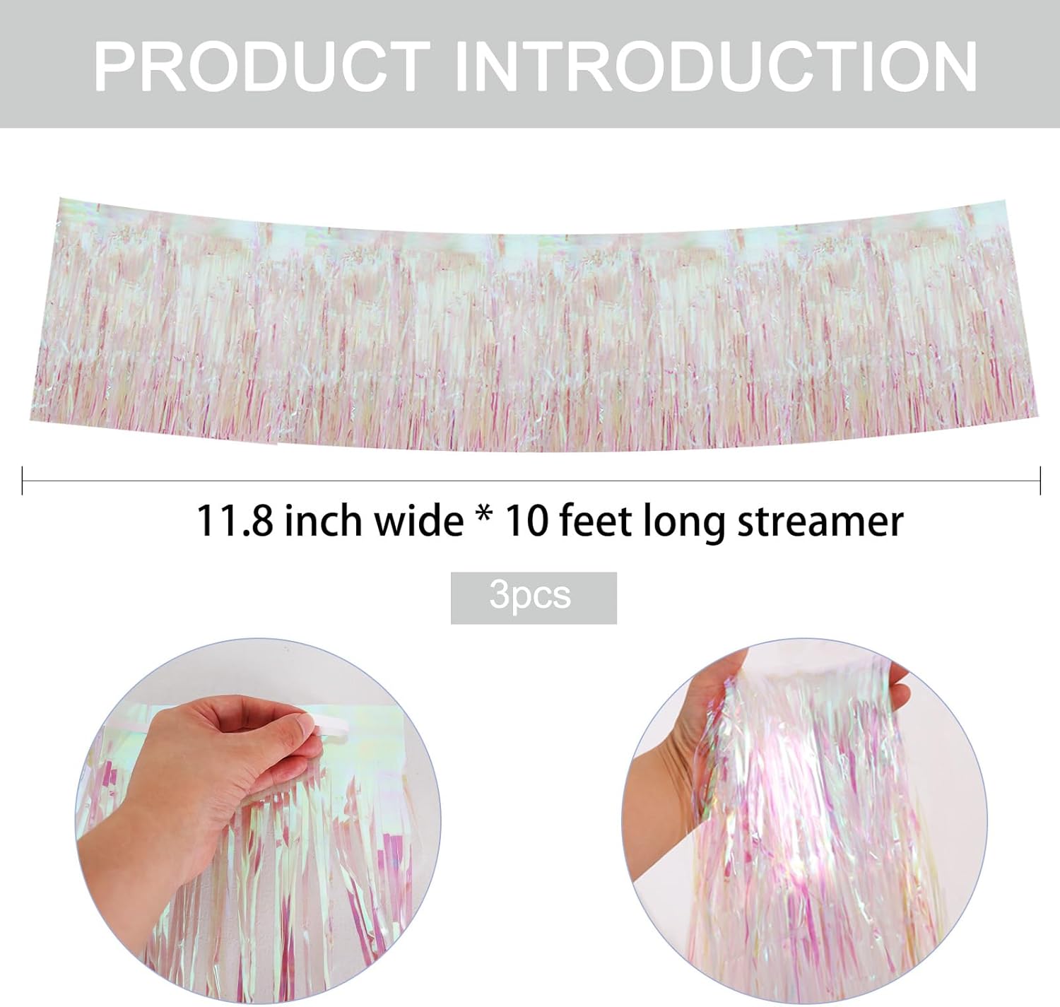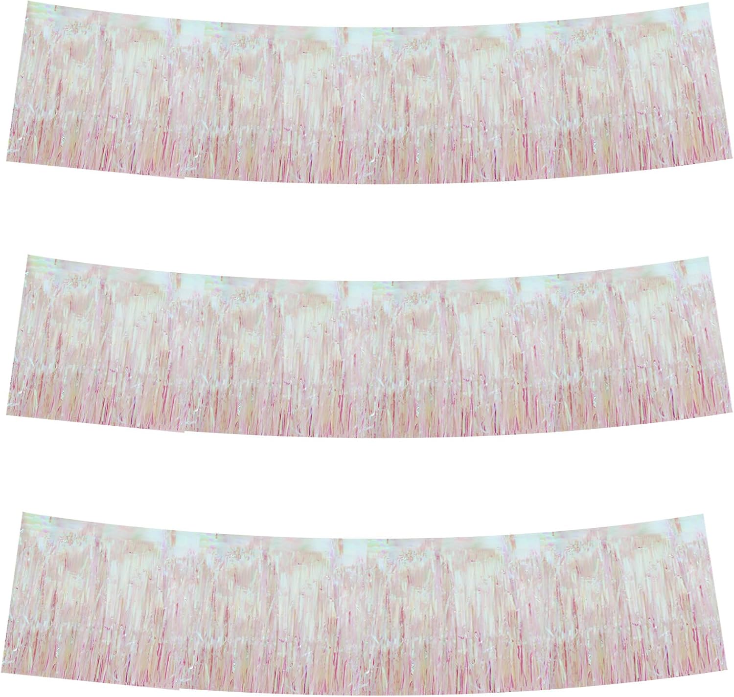 BEISHIDA 3 Packs Metallic Foil Fringe Garland Shining Transparent Wall Hanging Tinsel Fringe Banners for Car Floats Bridal Shower Wedding Birthday Easter Graduation Holiday Party Decoration(30 Feet)