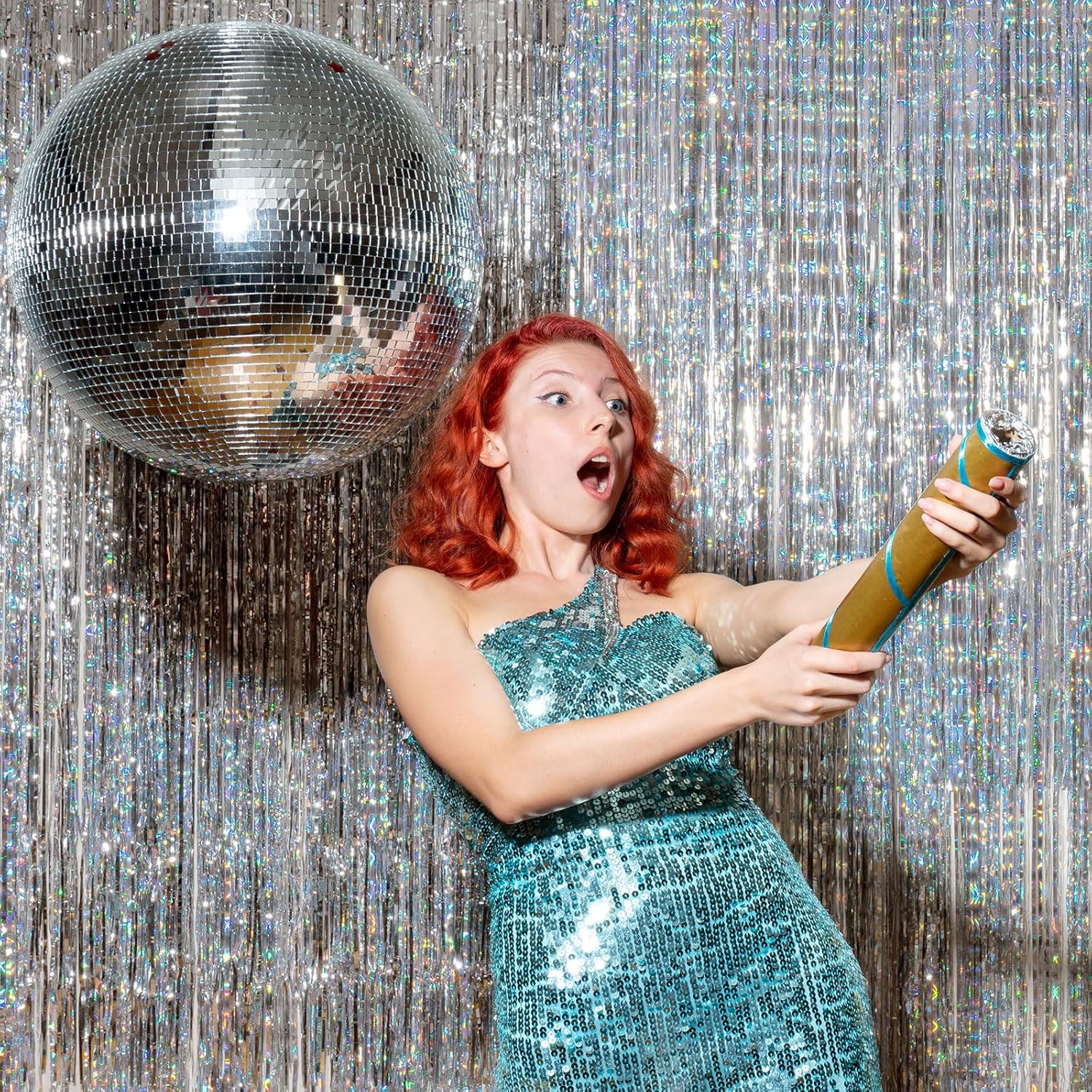 • Material: This high-quality tinsel curtain is crafted from shimmering metallic tinsel, creating a dazzling silver backdrop or vibrant colored display. Its reflective surface enhances any space as a stunning shimmer wall backdrop, perfect for parties and events. Fade-resistant, reusable, and instantly transformative.