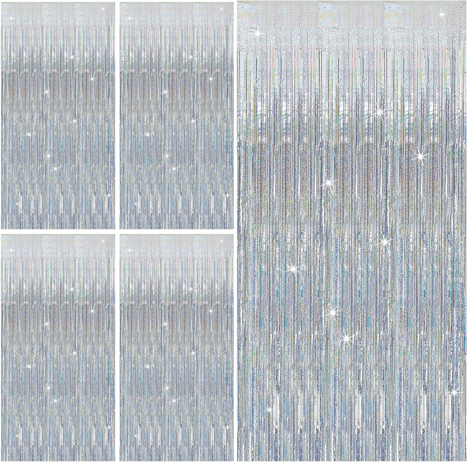 5 Pack Silver Glitter Streamers Party Decorations Tinsel Foil Fringe Curtains Christmas Birthday Bachelorette Party Wedding Decor Supplies