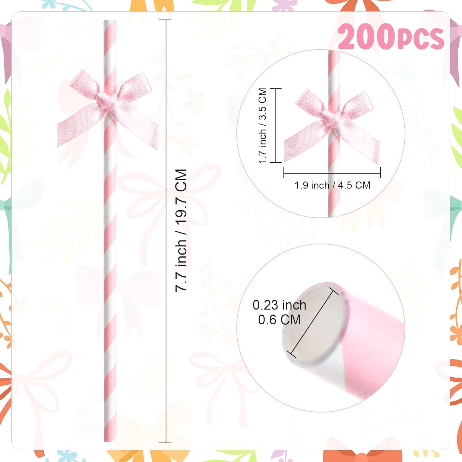 • Large Quantity of Straws: the package contains 200 pink paper straws with bows, each straw is about 7.76 inches/197 mm long and 0.24 inches/197 mm wide; The size is suitable for most drinking cups, and the straws with pink bows and stripes are more exquisite, and the number of straws can also meet your festival or daily replacement apply