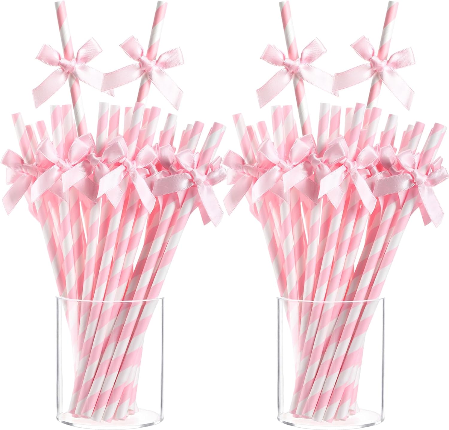 • Quality Material: stripe disposable paper straws are made of quality paper, the bow is made of pink ribbon; These pink party straws are safe and reliable, with stable patterns, not easy to fade, and not easy to break or fall apart even when placed in liquids, making them the perfect accessories for daily drinking