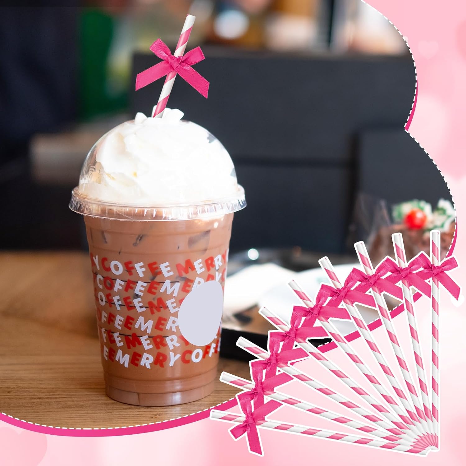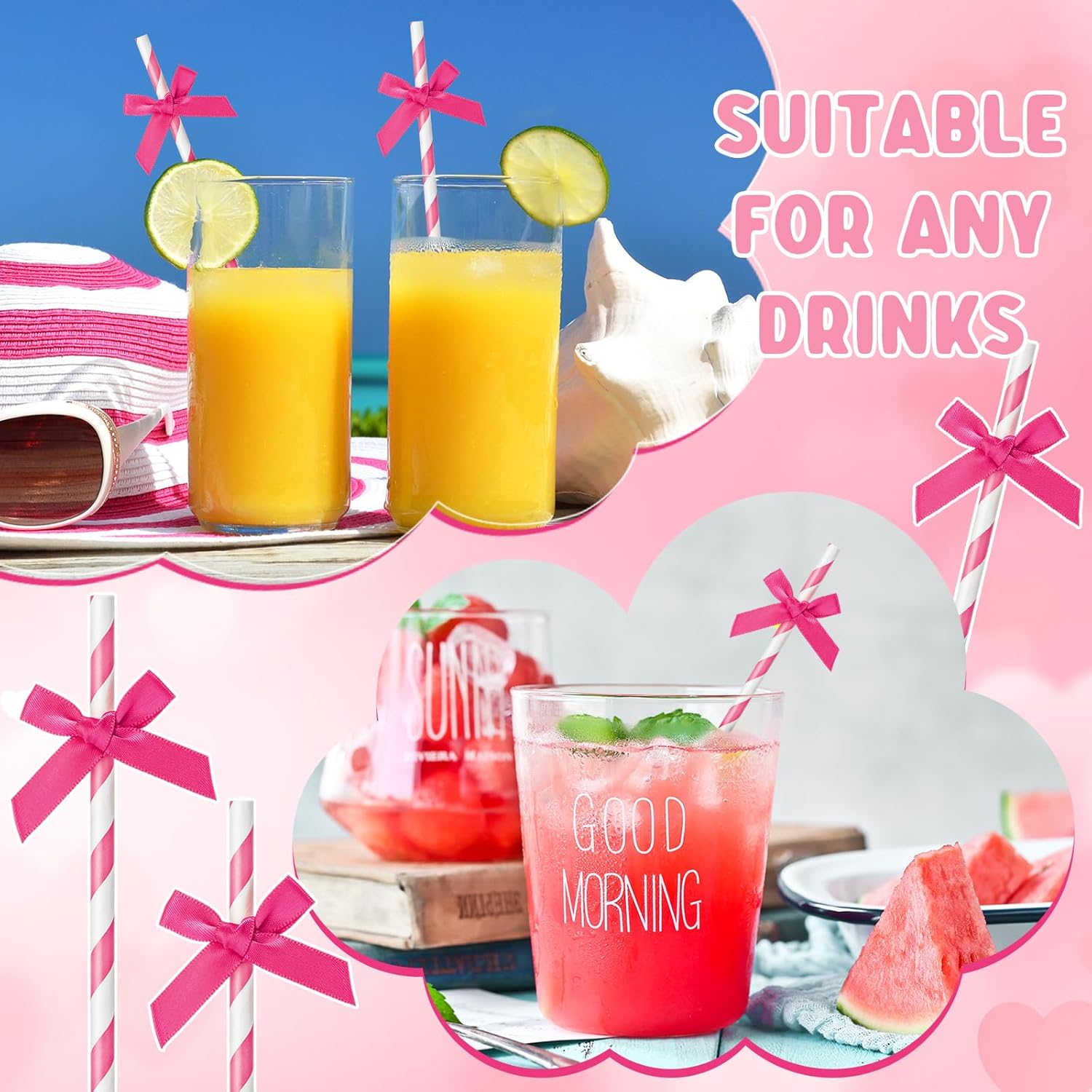 • Quality Material: stripe disposable paper straws are made of quality paper, the bow is made of rose red ribbon; These rose red party straws are safe and reliable, with stable patterns, not easy to fade, and not easy to break or fall apart even when placed in liquids, making them the perfect accessories for daily drinking