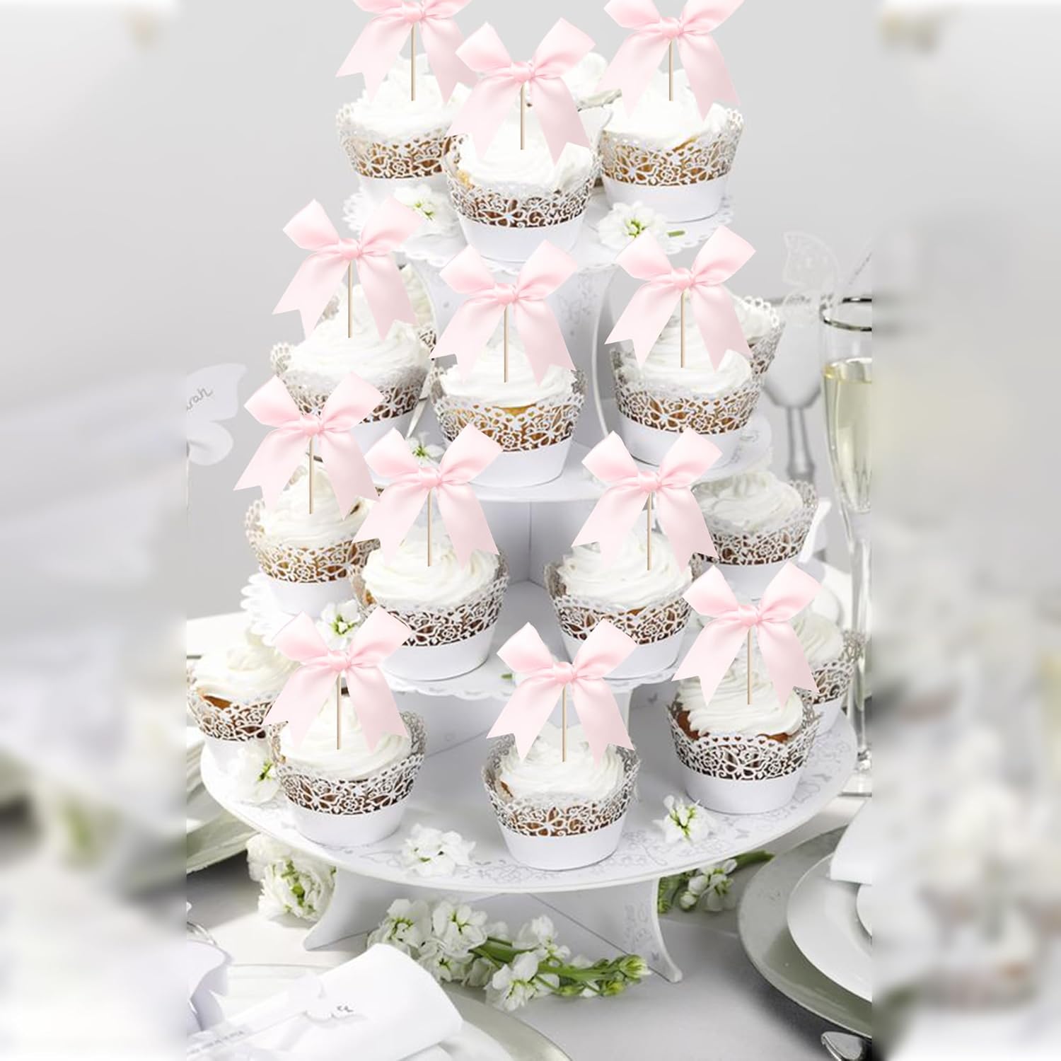 24 PCS Bow Cupcake Toppers Bowknot Coquette Bow Girls Birthday Cake Decorations Bow Cake Toppers Bowknot Cupcake Picks for Baby Shower Birthday Wedding Bridal Engagement Party Supplies Pink