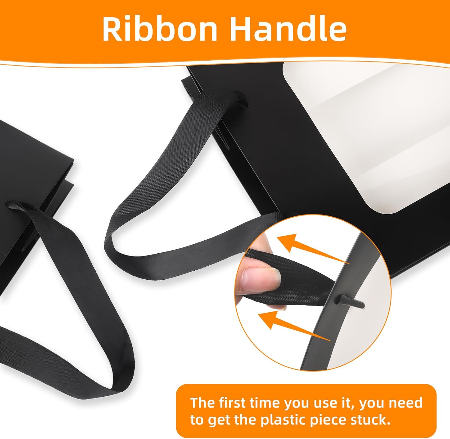 • Comfortabl Ribbon Handles: The broad silk handles provide a comfortable grip, enhancing black kraft bags's luxurious feel. black paper bags's elegant and chic appearance adds a special touch of sophistication to your gifts, making every occasion more memorable.