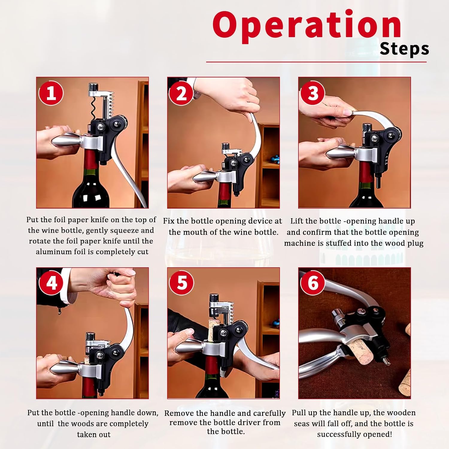 • 3.Easy to Use: The classic corkscrew has excellent functions, ergonomic design, and extended handle. Extra long handle design saves effort,this is famous for its extremely easy-to-use one-pull operation that ensures fast and smooth usage