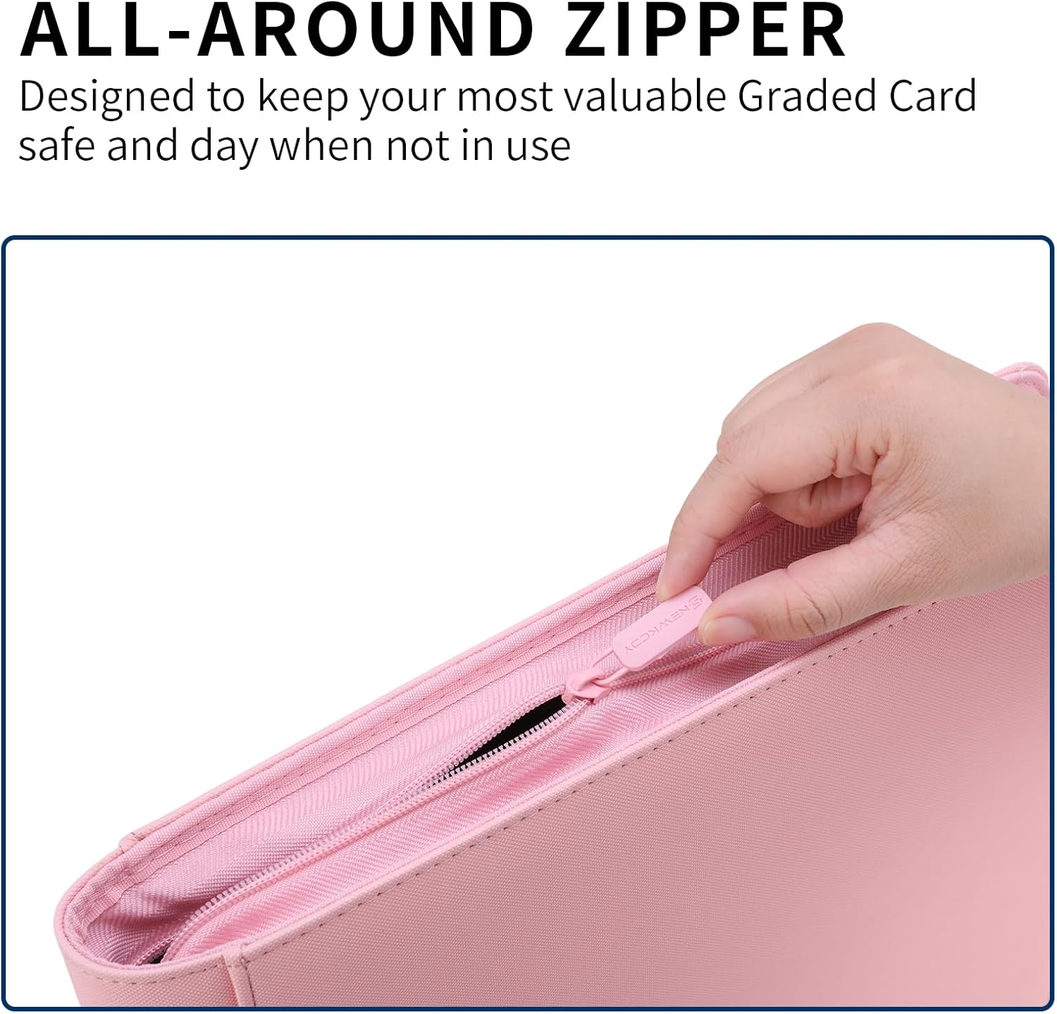 Snekdy premium 1024-pocket trading card binder, 16-pocket cards album, waterproof PU-leather Cover album with side loading, holds gaming, baseball, basketball & sports cards (Pink)
