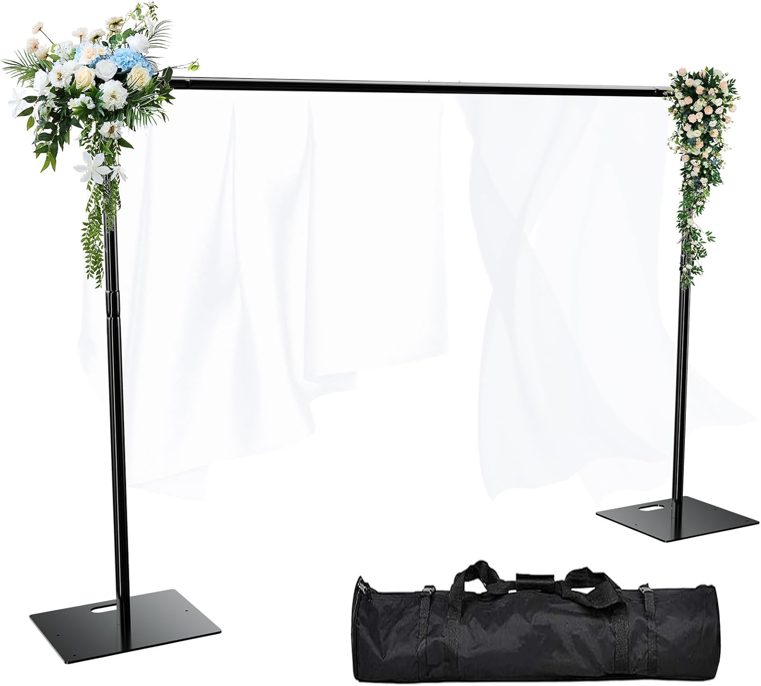 • Adjustable Height & Width: Fully adjustable height from 3.3 ft to 10 ft and width from 5.6 ft to 10 ft, allowing versatility for different backdrop sizes.