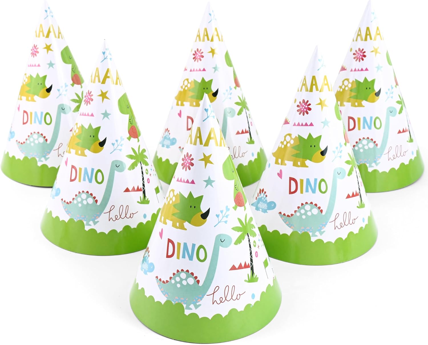 • ๐Ÿฆ–[Great Quality] Birthday party hats are made of premium quality cardboard. Light weight will not add burden to your head. Perfect accessories to create great dinosaur party time and memories!