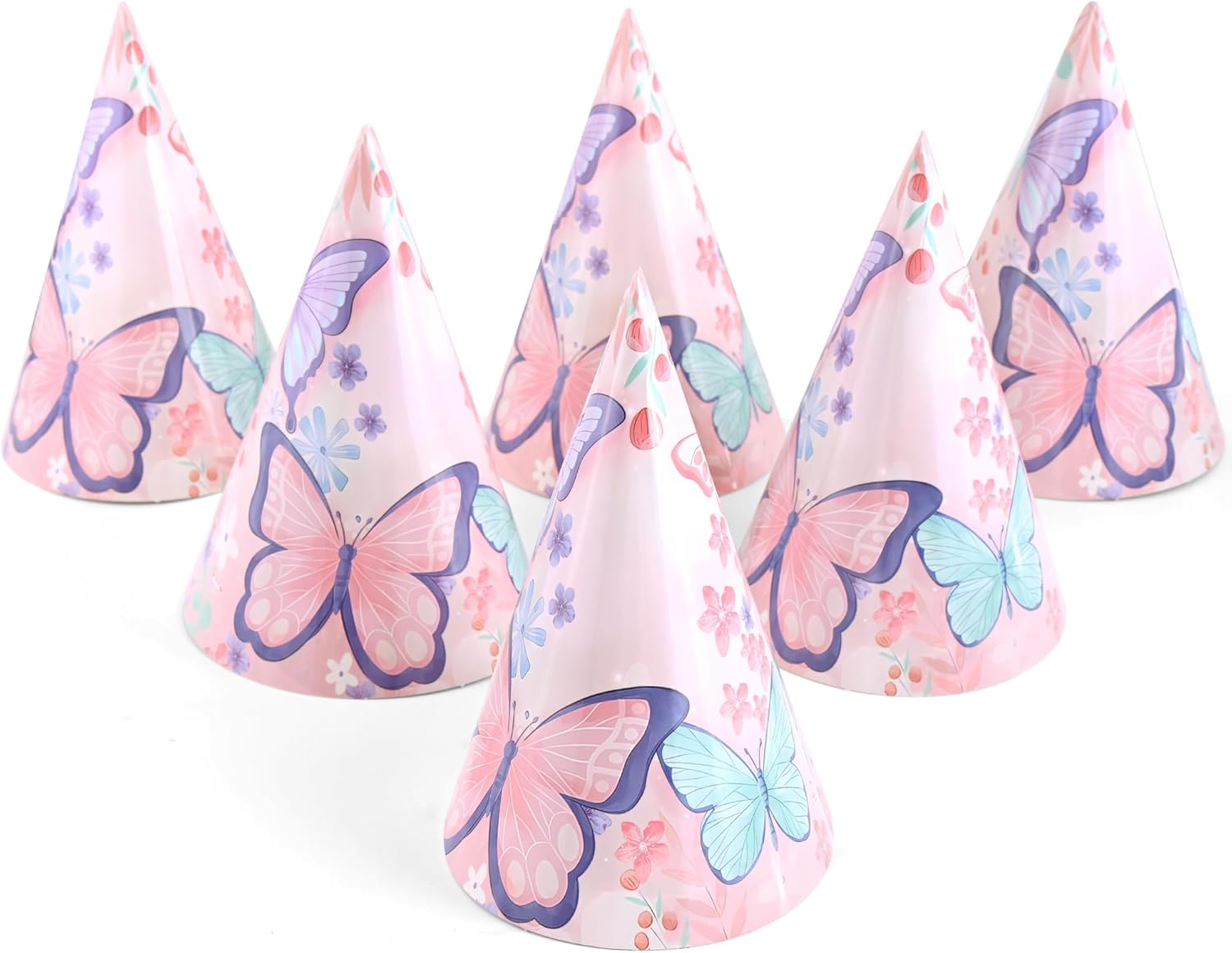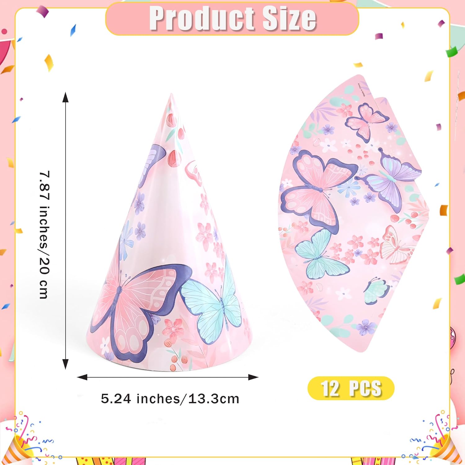 • 🩷[Great Quality] Birthday party hats are made of premium quality cardboard. Light weight will not add burden to your head. Perfect accessories to create great butterfly party time and memories!