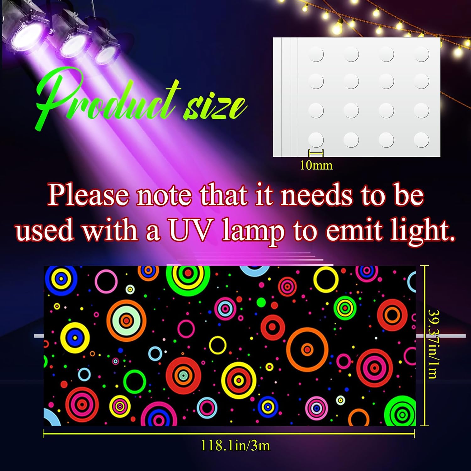 • Bright Fluorescent Color: the light up dance floor shines brightly under UV blacklight, with fluorescent orange, fluorescent red, fluorescent green, fluorescent yellow, and fluorescent blue rings staggered against each other, making it simple to draw the attention of others; Please note that it will have the effect of fluorescence, but it needs to be irradiated by purple lamp to have the effect; If it is not irradiated, it is a normal pattern