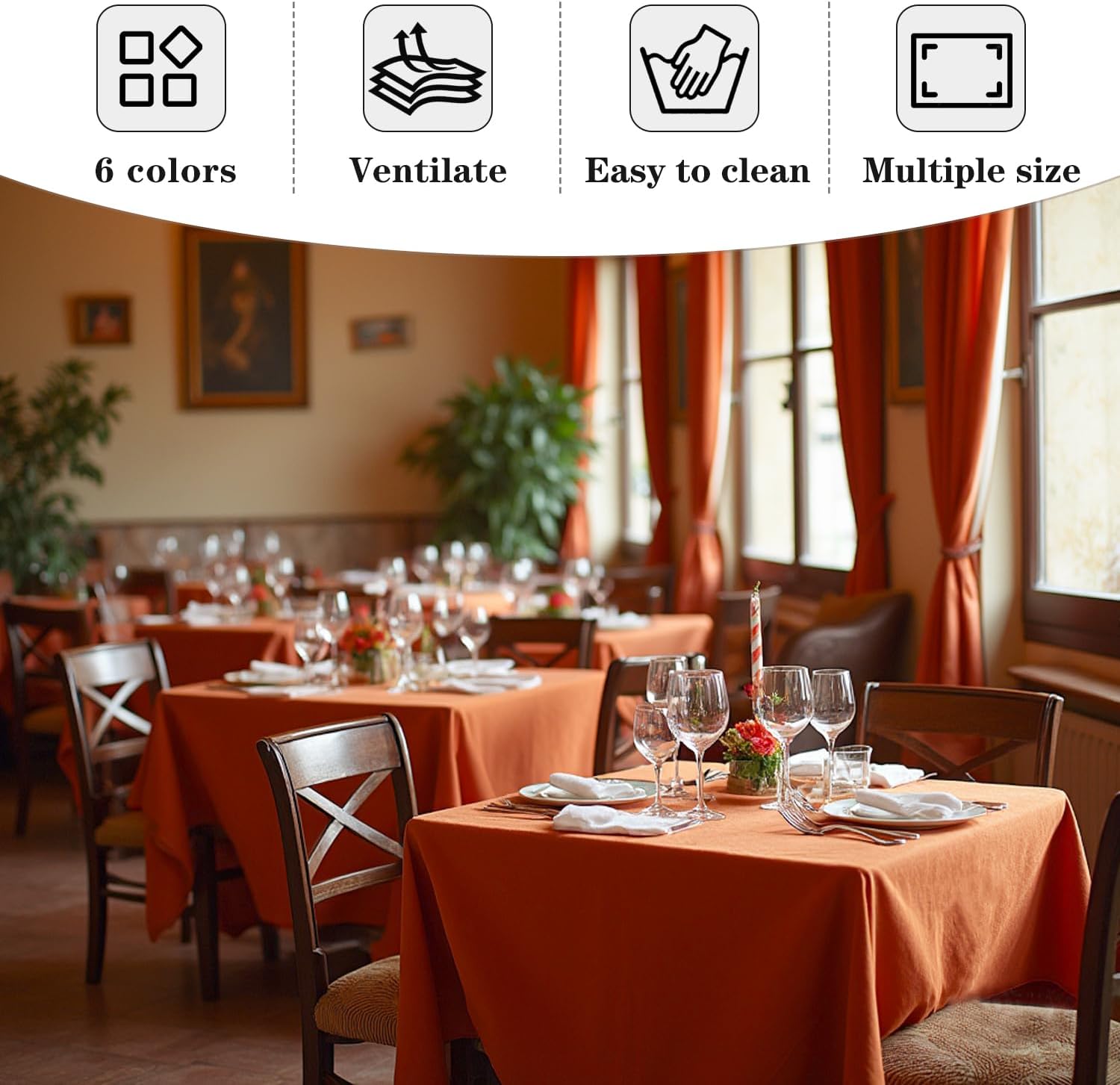 Fitable 6 Pack Square Fall Tablecloths - 70 x 70 Inches, Rust - Stain Resistant and Reusable Table Clothes, Polyester Fabric Table Covers for Dining, Card Tables, Coffee Tables