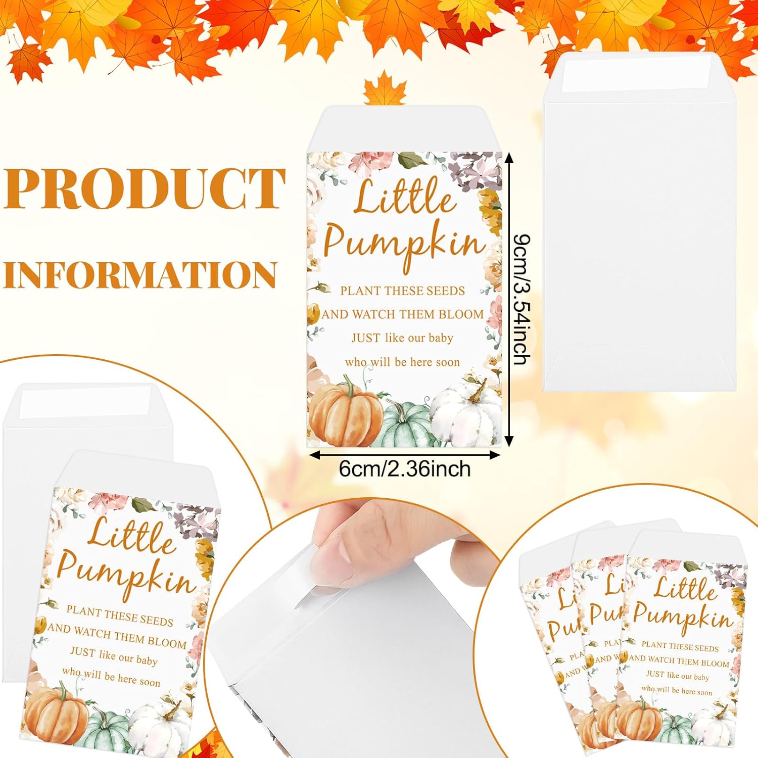 • Elegant Presentation and Easy to Use: our little pumpkin baby shower favors for guests are presented in an organza bag; Each seed bag has glue on the back for easy sealing, while the hard quality card can be personalized with messages; Please note that seeds are not included in the package