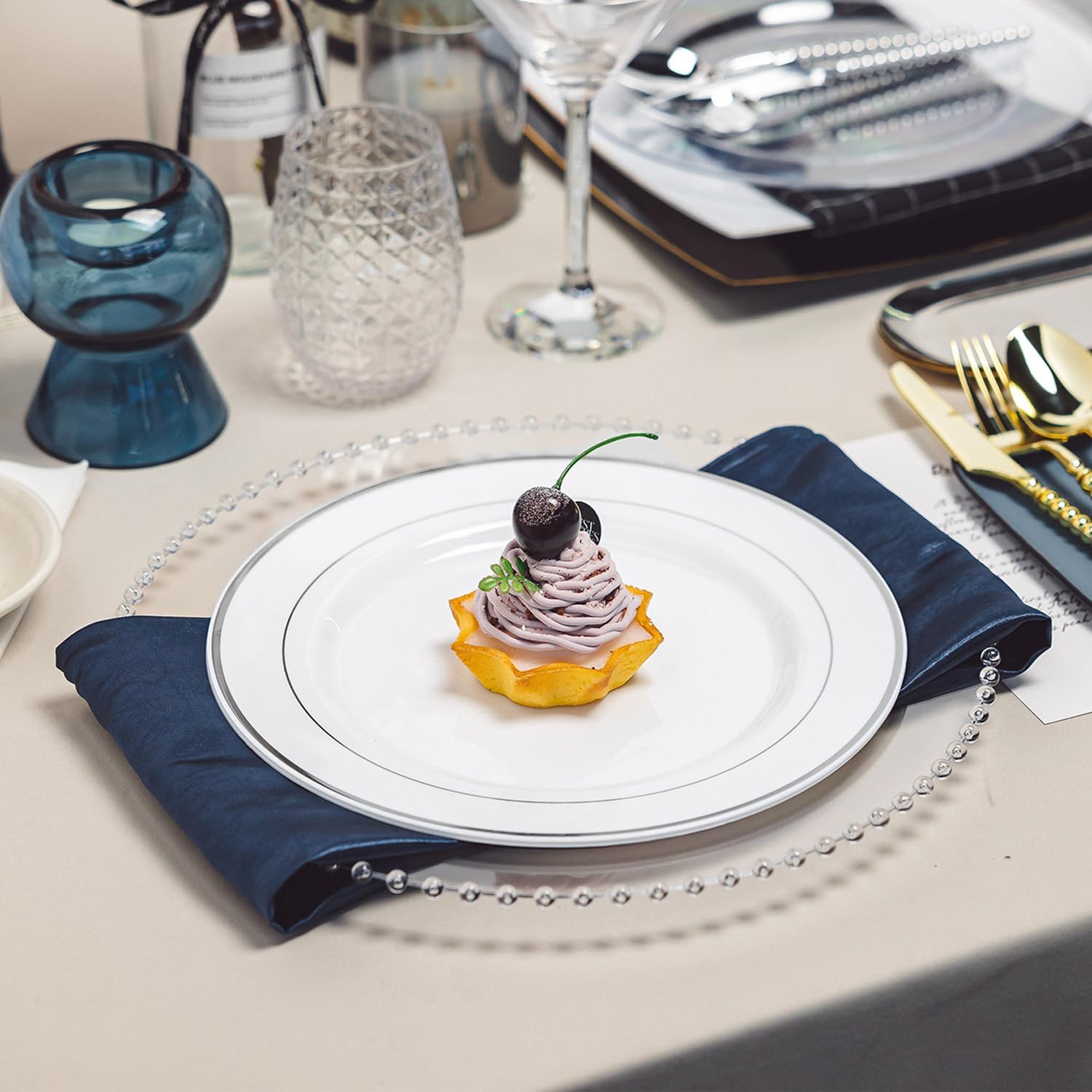 • PERFECT FOR ALL OCCASION: The white plastic plates with silver rim are simple and atmospheric, and are suitable for birthday parties, baby showers, dinner parties, weddings, barbecues, business gatherings, graduations, BBQs, family reunions, New Year's Day, and other special anniversaries. It is absolutely worth it