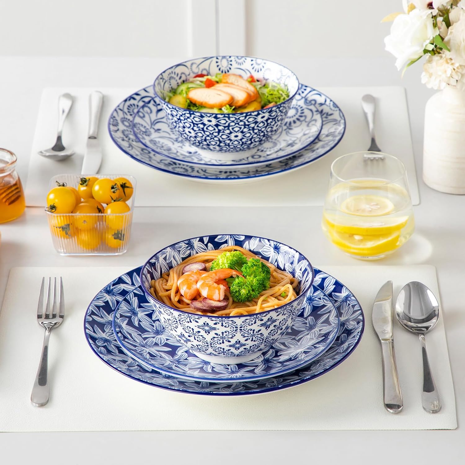 vancasso SELENE 24 oz Cereal Bowls set of 6, Ceramic Soup Bowls for Kitchen, Dishwasher & Microwave Oven Safe- for Cereal, Soup, Pasta, Salad, Blue & White Floral Design Bowl Set