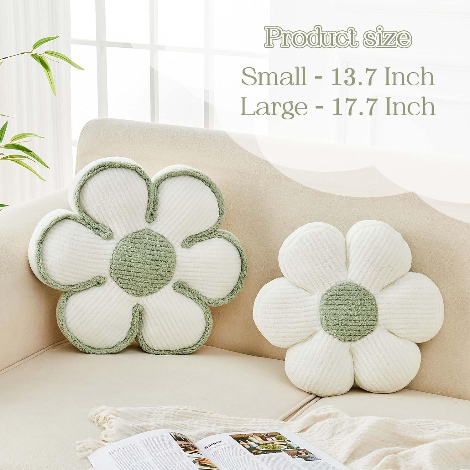 • DECORATIVE FLOWER PILLOWS OF VARIOUS SIZES - This floral throw pillow is not only a practical choice, but also a decorative addition to your living space. Small size - 13.7 Inch with 3 inch thickness, Large size - 17.7 inch with 4 inch thickness, whether placed on the floor, sofa or bed, it can effortlessly enhance the overall beauty of the room, adding cuteness and vitality to your bedroom decor a feeling of.