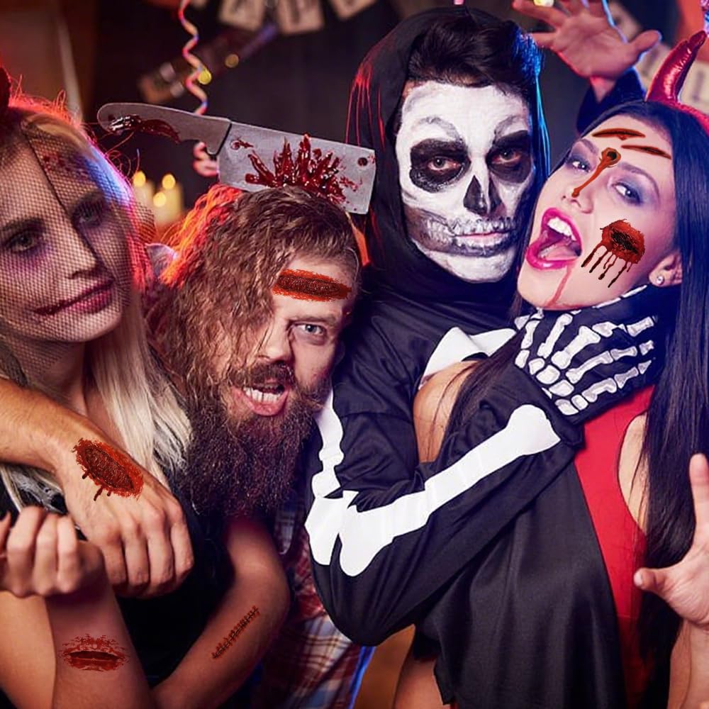 • 【Perfect for Halloween, Cosplay & Pranks】The Halloween wound temp tattoos are great for Halloween parties, Day of The Dead, scary Halloween costumes, sfx makeup, zombie cosplay, party favor supplies, car decals, masquerade or just scaring your friends. Adds a gruesome touch to any costume or event