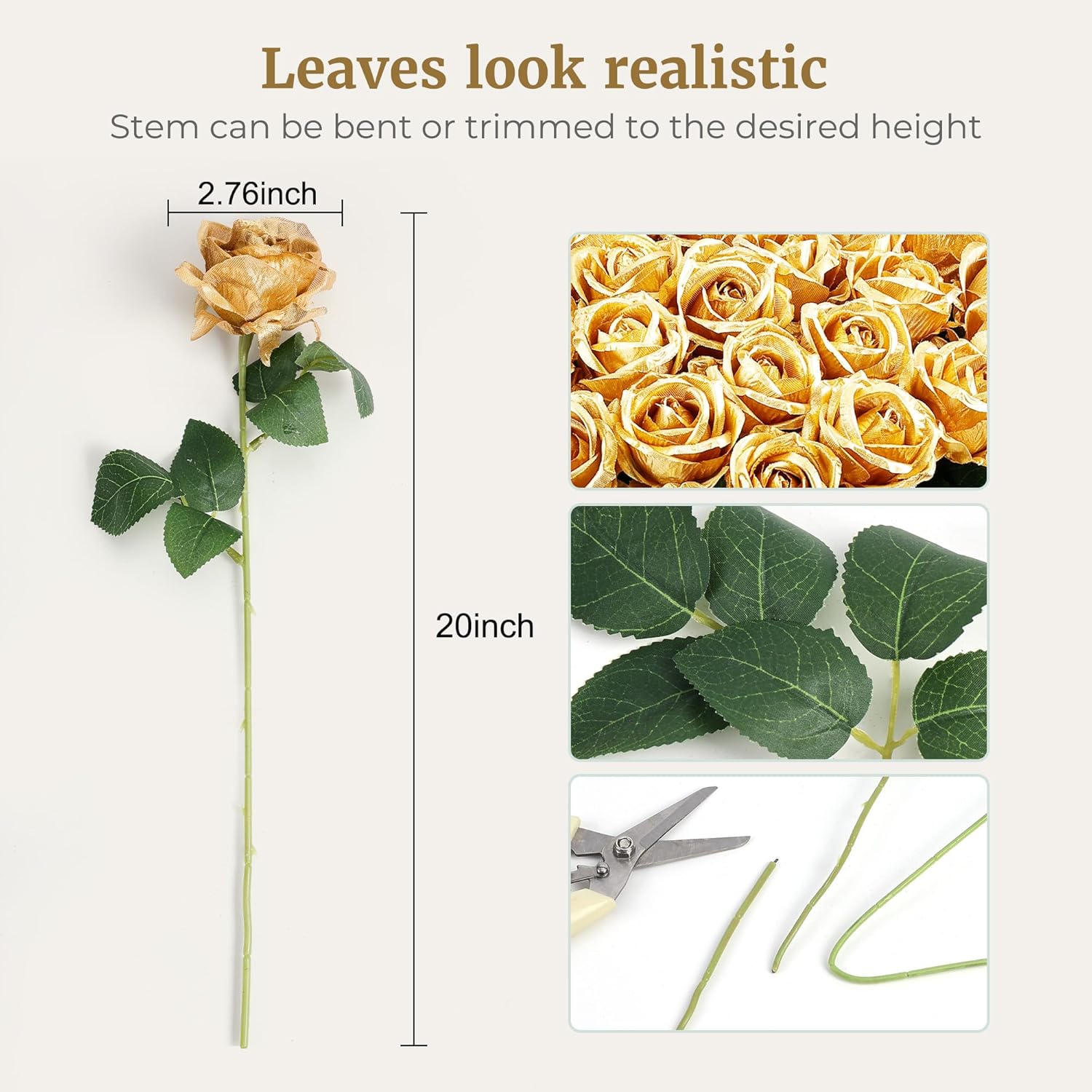 • Luxury Velvet & Silk Durability: Unlike fragile real blooms, these rose gold flowers resist fading and wear, maintaining vibrancy for years in outdoor wedding arbor decor or Mother's Day displays. Their premium silk construction ensures gold roses withstand graduations and housewarming events while retaining a lavish feel