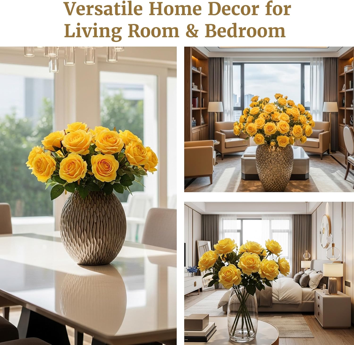 • Ultra-Realistic Silk Roses: Crafted from yellow silk roses with velvet-textured petals, these artificial yellow roses mimic real look detailsβ€”ideal for wedding cake decorations or bridal shower bouquets. Their lifelike hues and natural stems blend seamlessly in photo shoots or outdoor wedding arbor decor, fooling the eye with elegance