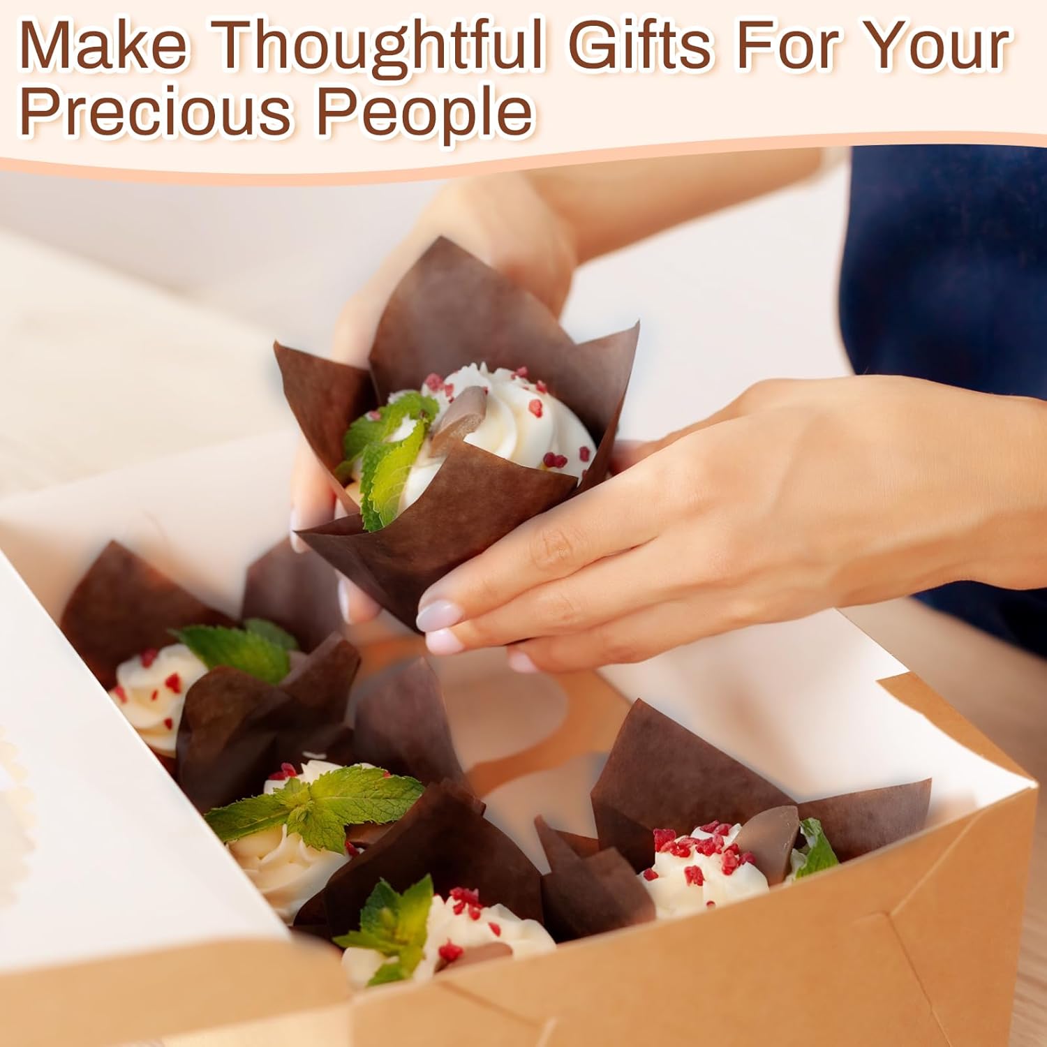 • Quality Greaseproof Paper: crafted with quality greaseproof paper, these tulip muffin liners offer grease resistance; Feel the difference in your baking experience as they can withstand high heat temperatures, avoid easy deformation or fading, and can be stored over a long period