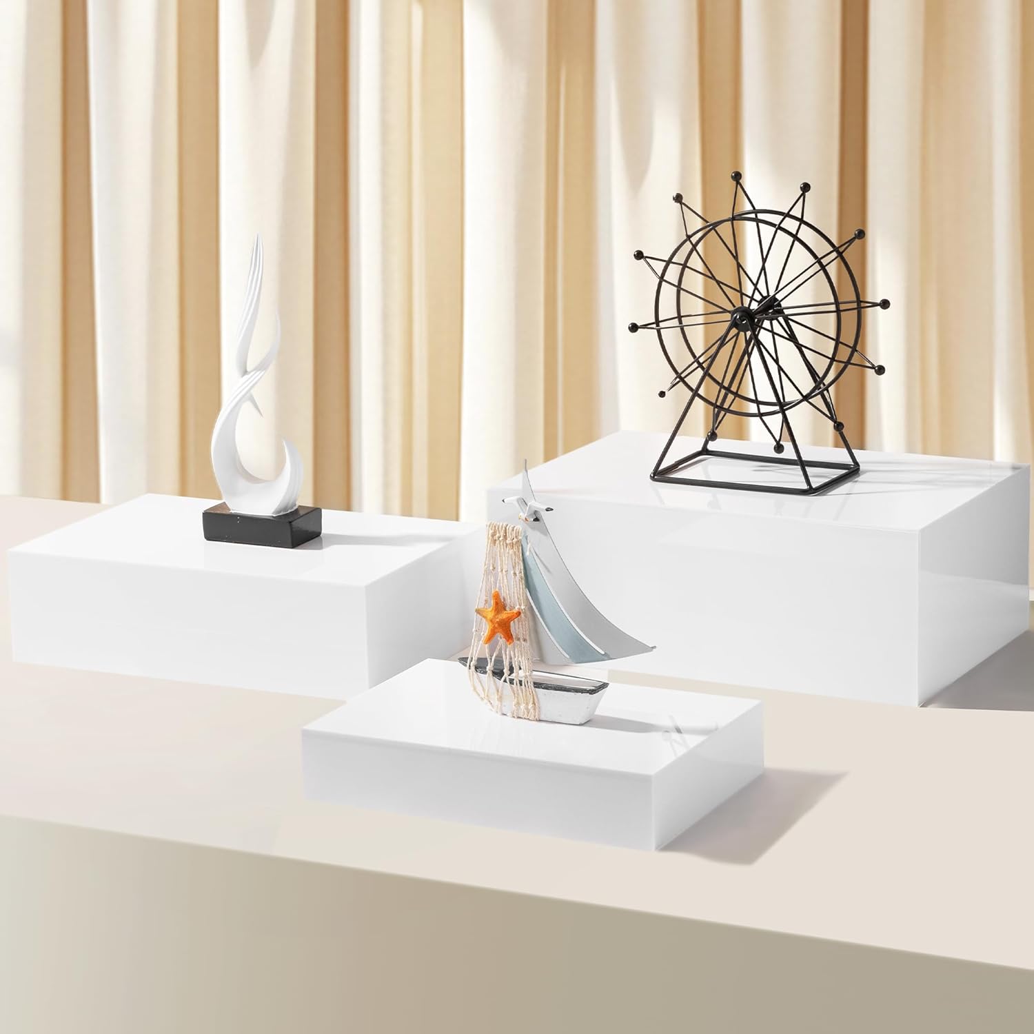 Extra Large Buffet Risers Set, 10" 12" 14" White Acrylic Food Risers for Buffet Table, Display Stand Shelf with Hollow Bottoms for Catering Dessert Collectibles Jewelry Figures Show (White)