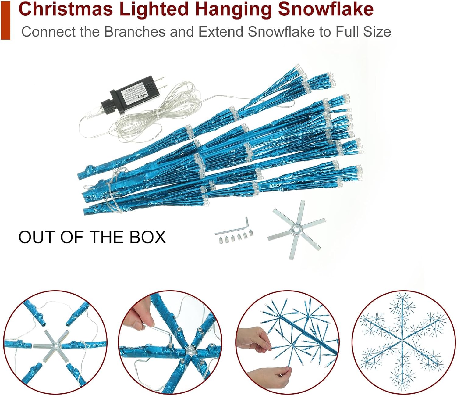 • Widely Used: Snowflake lights are one of the most eye-catching and versatile decorations you will ever buy. Can be hung both inside your home and outside on the roof. Snowflake lighted branches are an innovative and highly versatile lighting option for events, corporate settings and residential use
