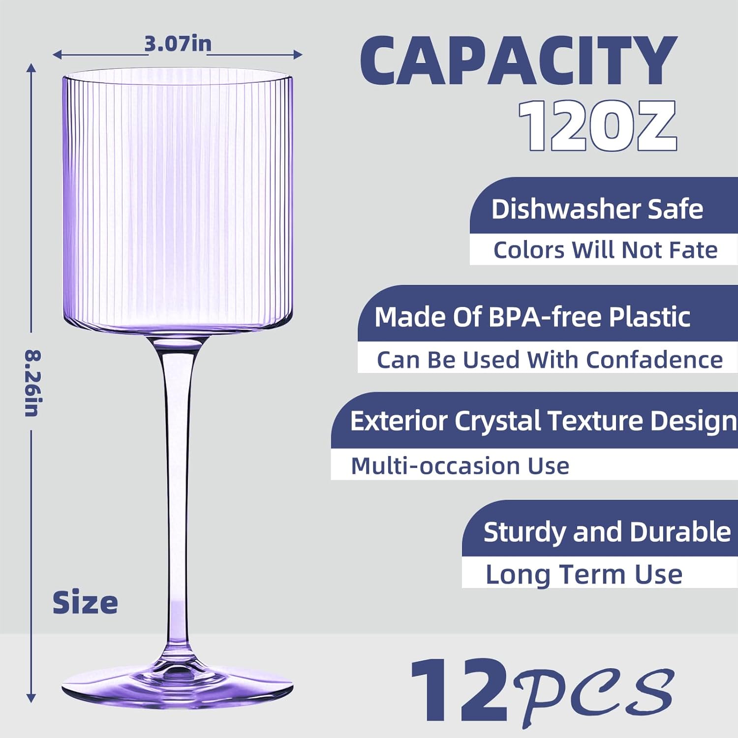 Plastic Goblets Wine Glasses - 12Oz Acrylic Wine Glasses Origami Unbreakable Clear Plastic Cocktail Glasses Recyclable Shatterproof Reusable Wine Cups for Parties & Weddings (Purple)