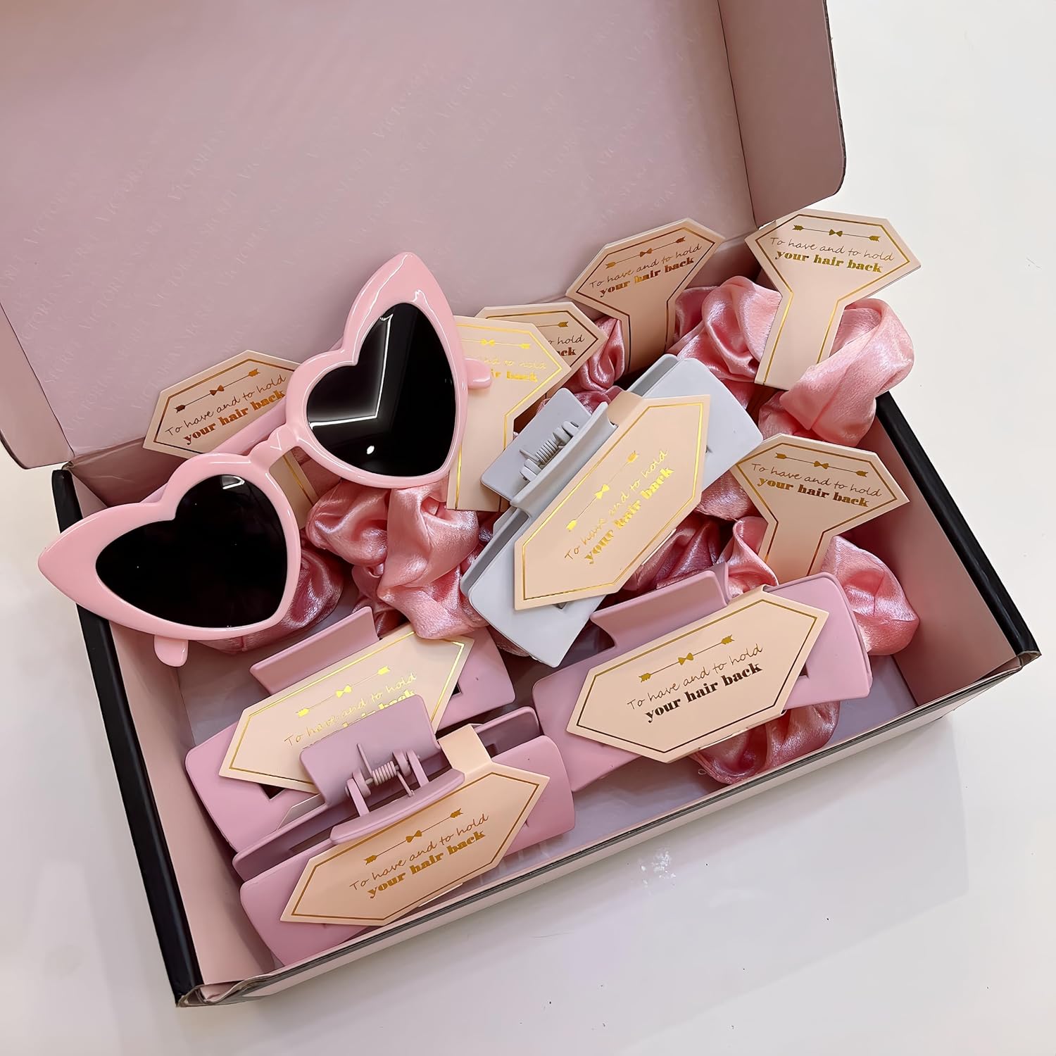 • Bridesmaid Proposal Gifts Sunglasses bulk pack includes 8pcs 4.1 inch hair Claws clips and 8pcs Bachelorette heart sunglasses and 8pcs Bridesmaid Scrunchies.1pcs for you and 7pcs for your friend, Perfect as bachelorette party favors sunglasses and bridesmaid sunglasses gifts!