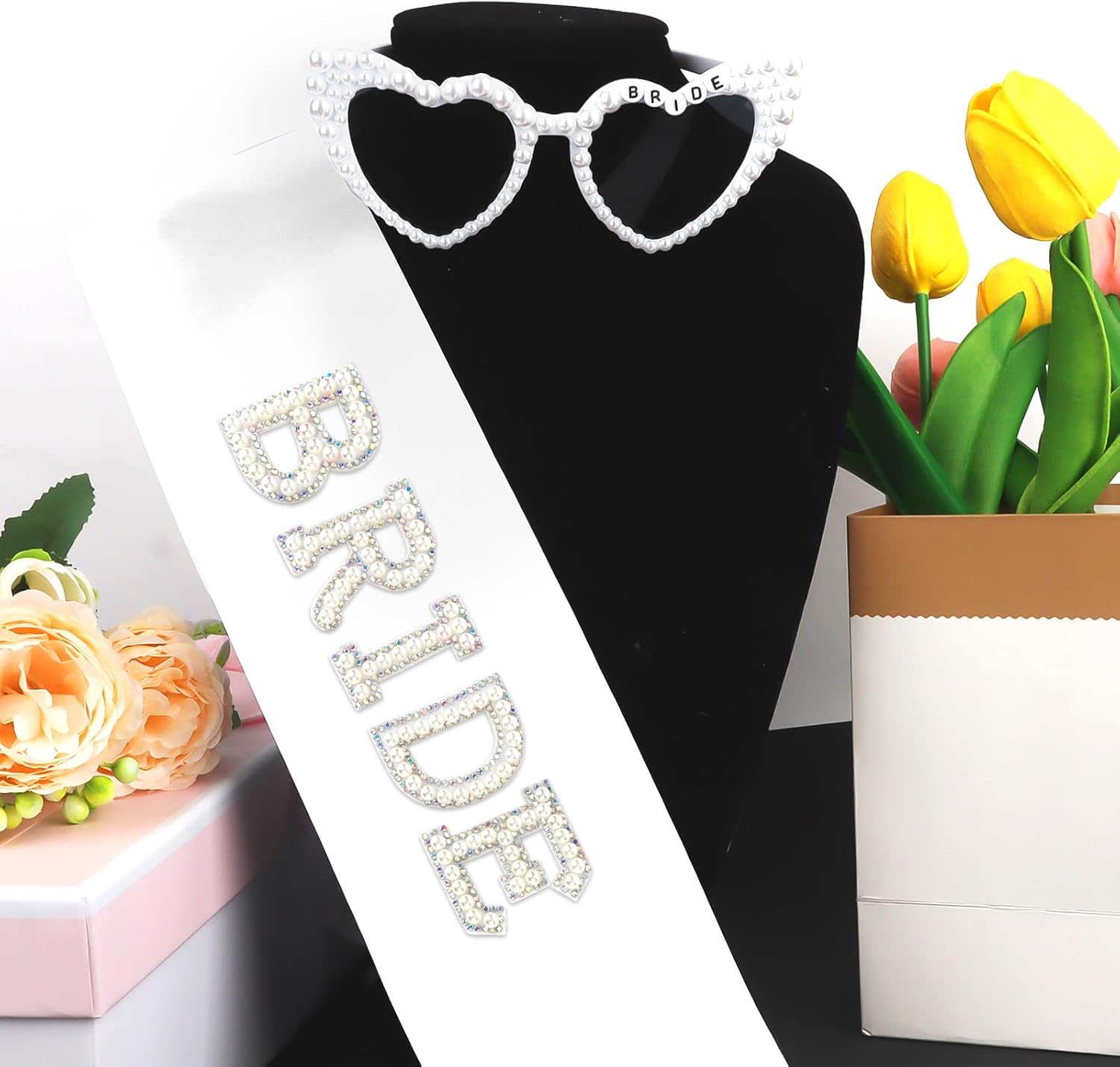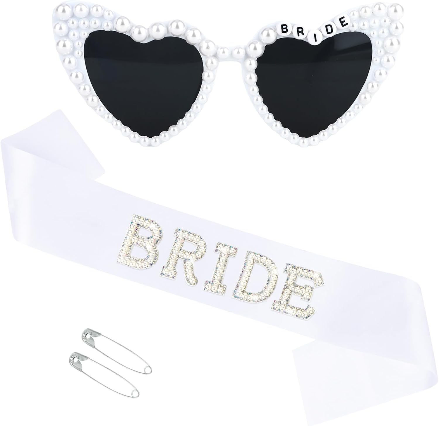 White Bride Sash & Heart Sunglasses Set Bachelorette Party Decorations Bridal Shower Engagement Party Decorations