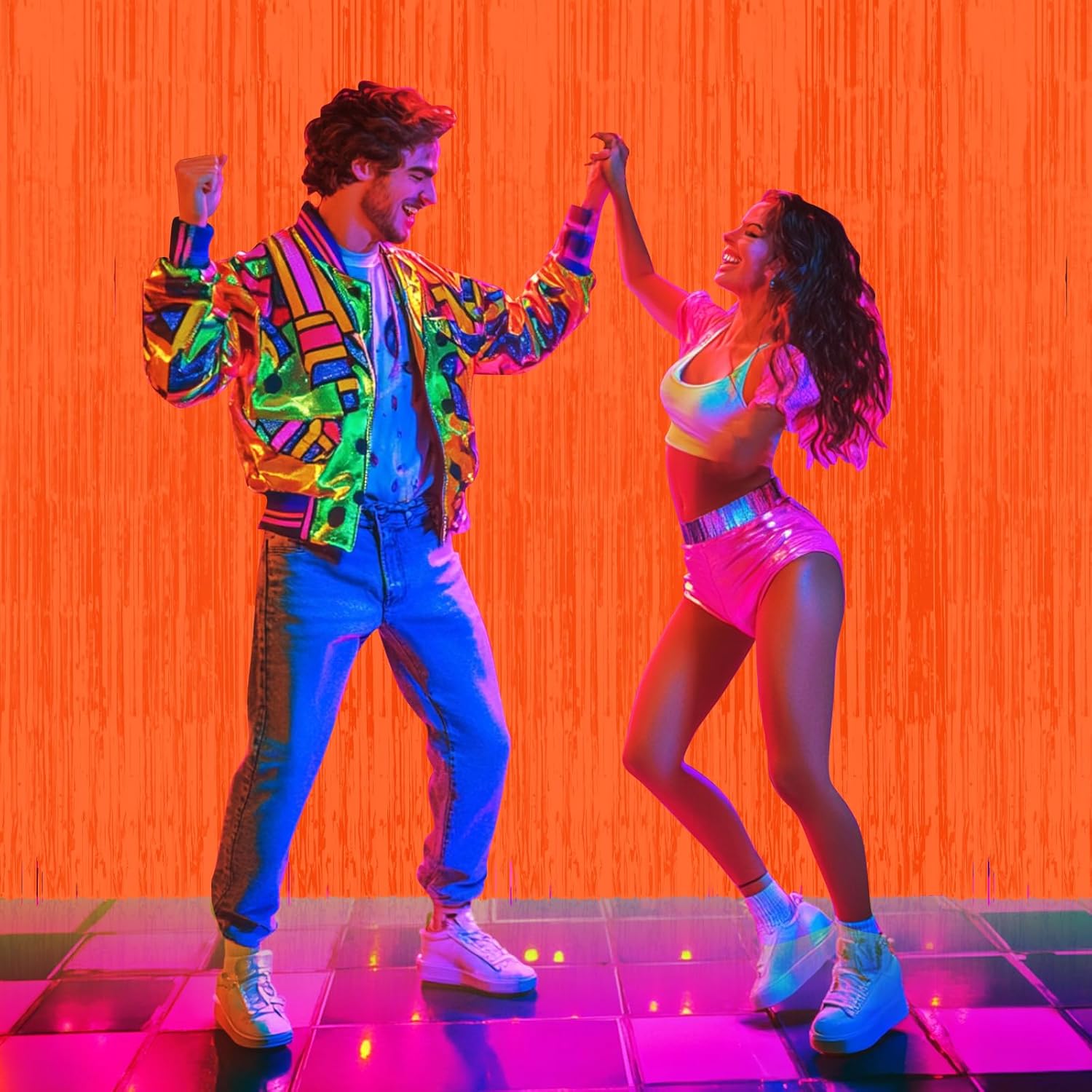 • What’s Inside: Included in the package are 3 orange glow in the dark foil fringe curtains, each measuring 3.3 x 6.6 ft, making them suitable for decorating most scenes. Perfect for creating an impressive neon backdrop for neon birthday party decorations and glow in the dark party supplies