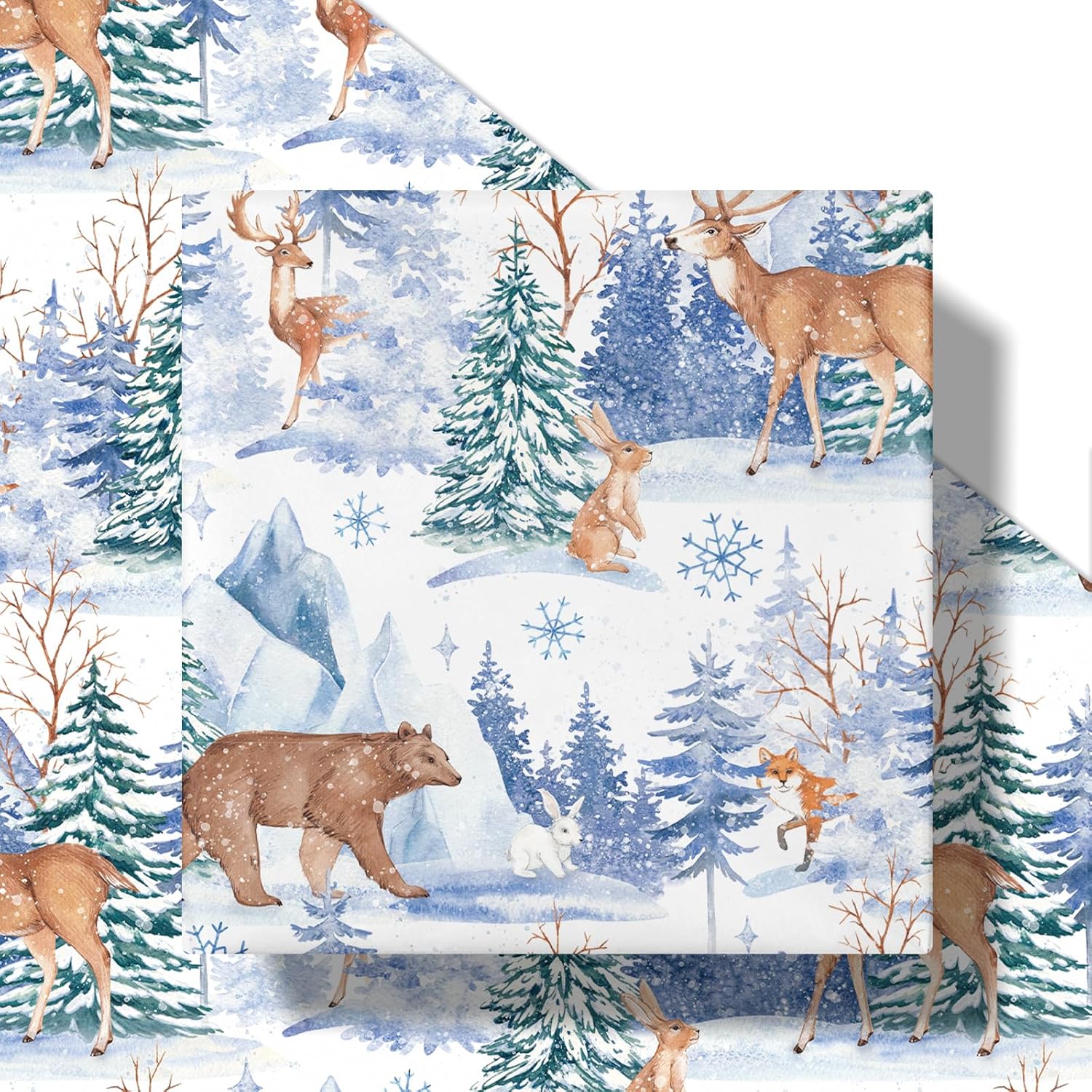 • Enchanting Winter Forest Design: Features a watercolor-style woodland scene with deer, bears, rabbits, and snow-covered trees—bringing the peaceful beauty of winter nature to your holiday gifts.