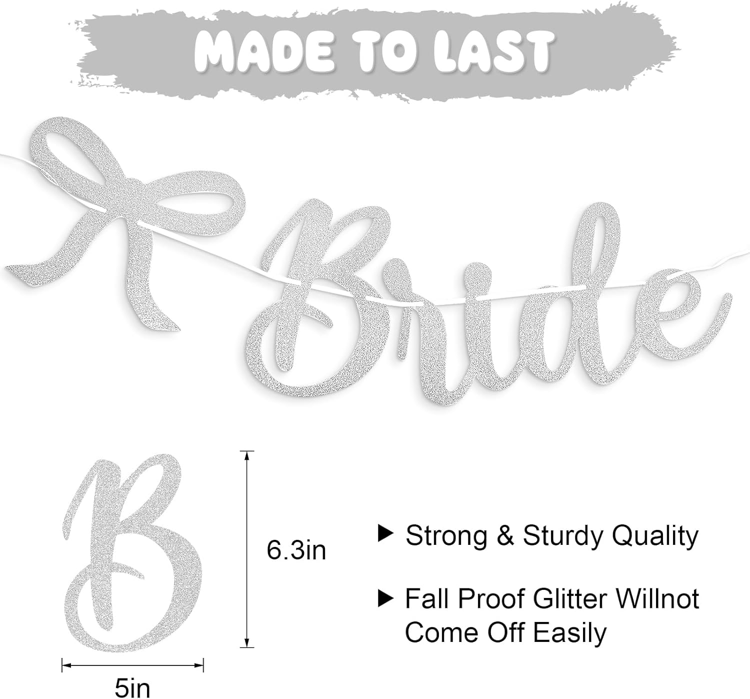• Bridal Banner Set: This white bride to be banner set features 9 glittery letters spelling “Bride to Be” along with 2 bow cutouts on each end, each flag measures 5in x 6.3in, bringing a lively, festive vibe to your decor. The elegant shine and trendy hues create a stylish backdrop that’s perfect for capturing unforgettable moments at your bridal shower party decoration and bachelorette party celebration.