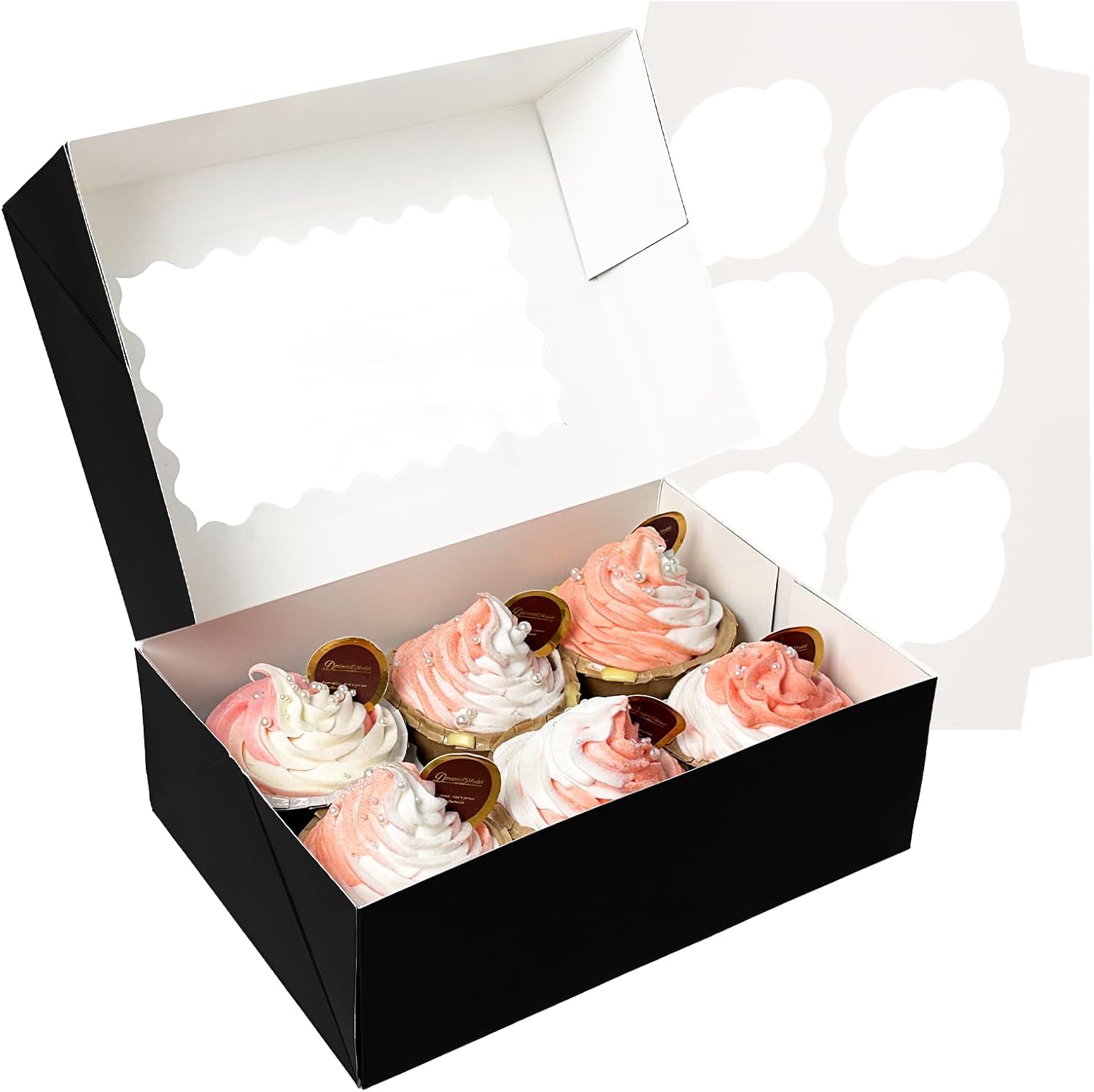 • (1)20 Packs Black Cupcake Boxes/ 20 Packs cupcake Holder Insert/ 9.4 x 6.1 x 3 inch.